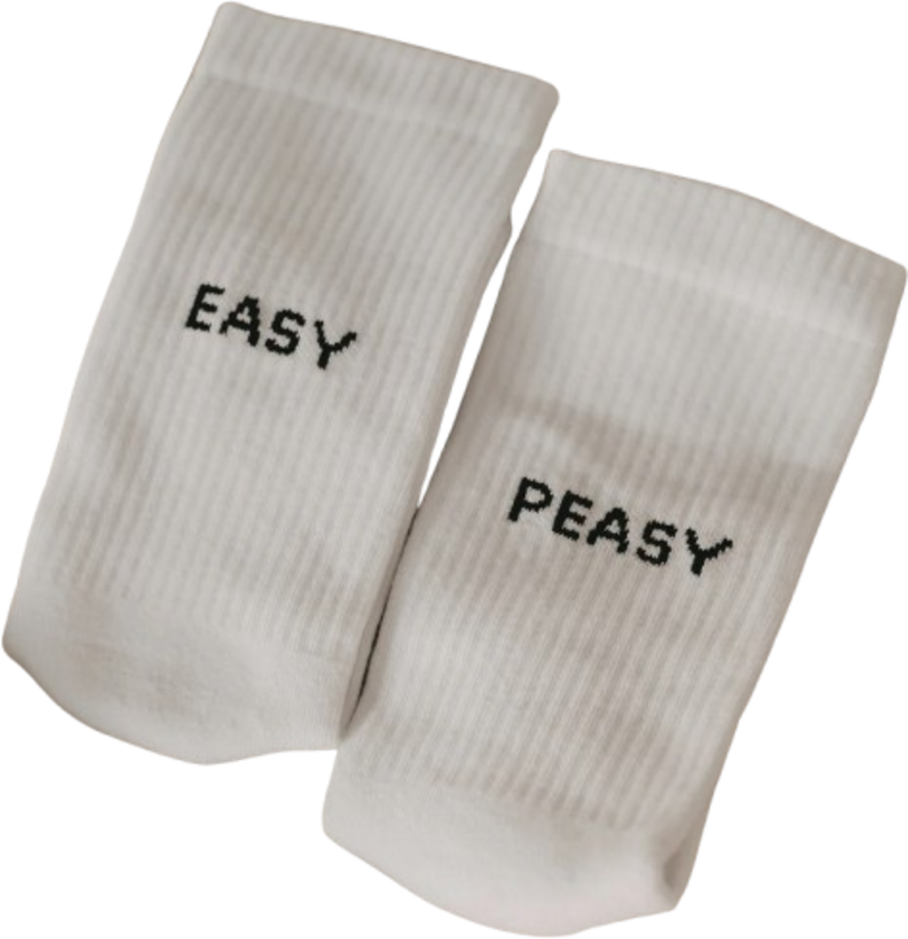 Casual, comfortabel en nonchalant: deze witte sokken van zacht biologisch katoen hebben de woorden "easy" en "peasy" op de hielen - perfect voor ontspannen dagen en een goed humeur.