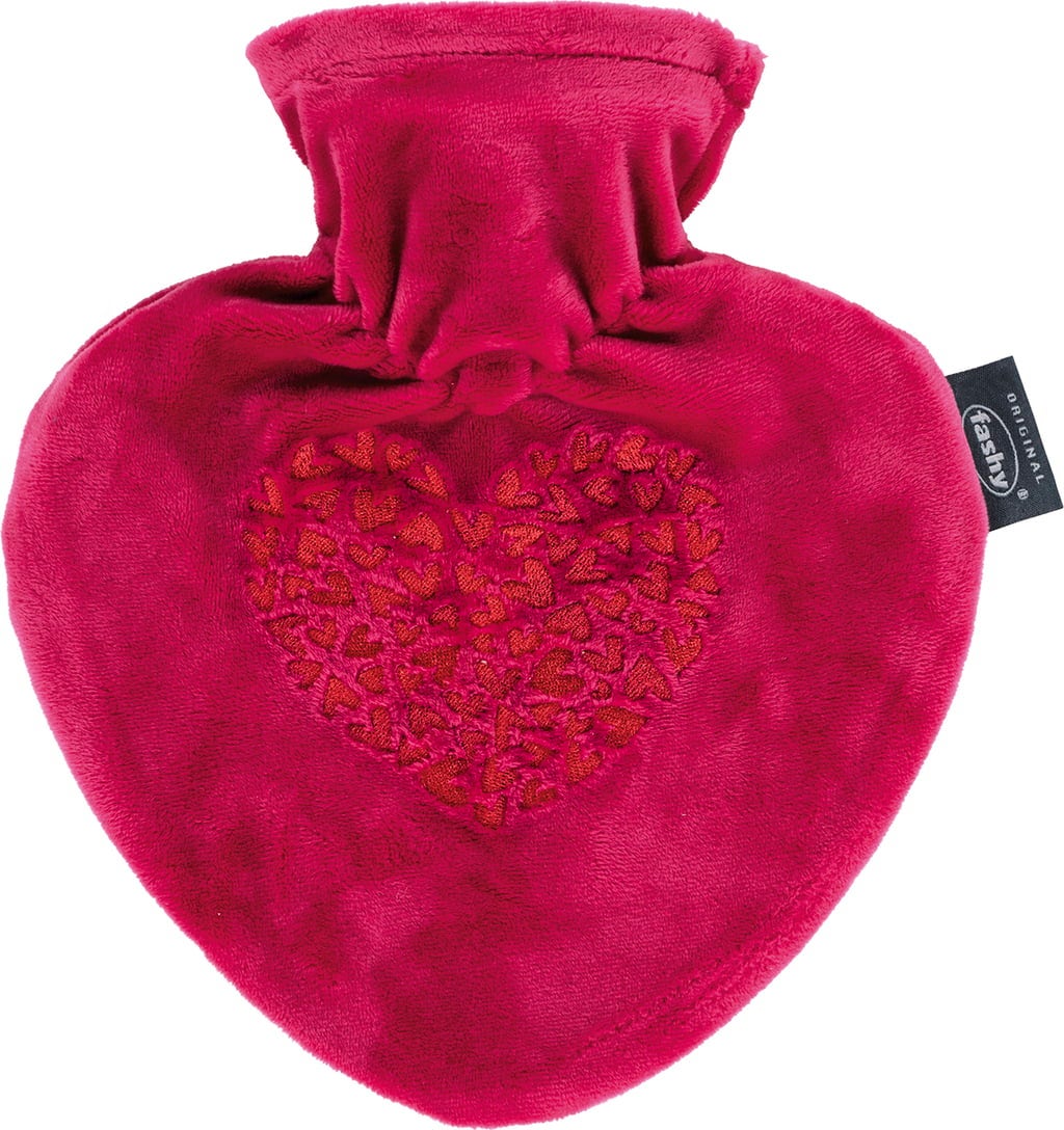Fashy Hartvormige Warmwaterkruik met Hoes en Borduursel, Fuchsia - 0,7 Liter