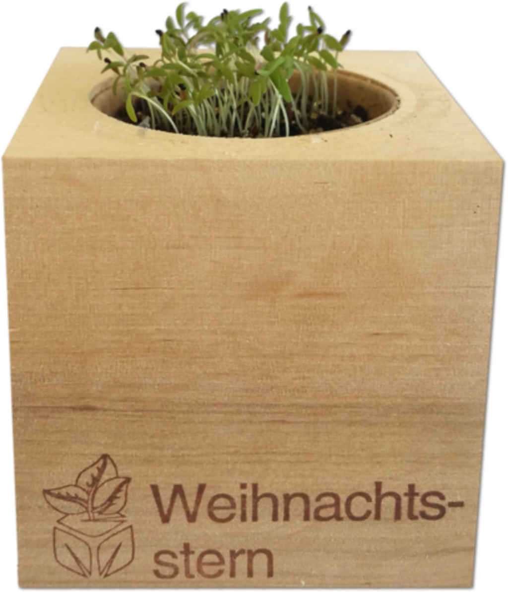 Na korte tijd veranderen de zaden in de decoratieve houten cubes in bloemen. Elke cube is gemaakt van hoogwaardig elzenhout, gevuld met speciale voedingskorrels en plantenzaden en verzegeld met een sticker ter bescherming tegen ziektekiemen.