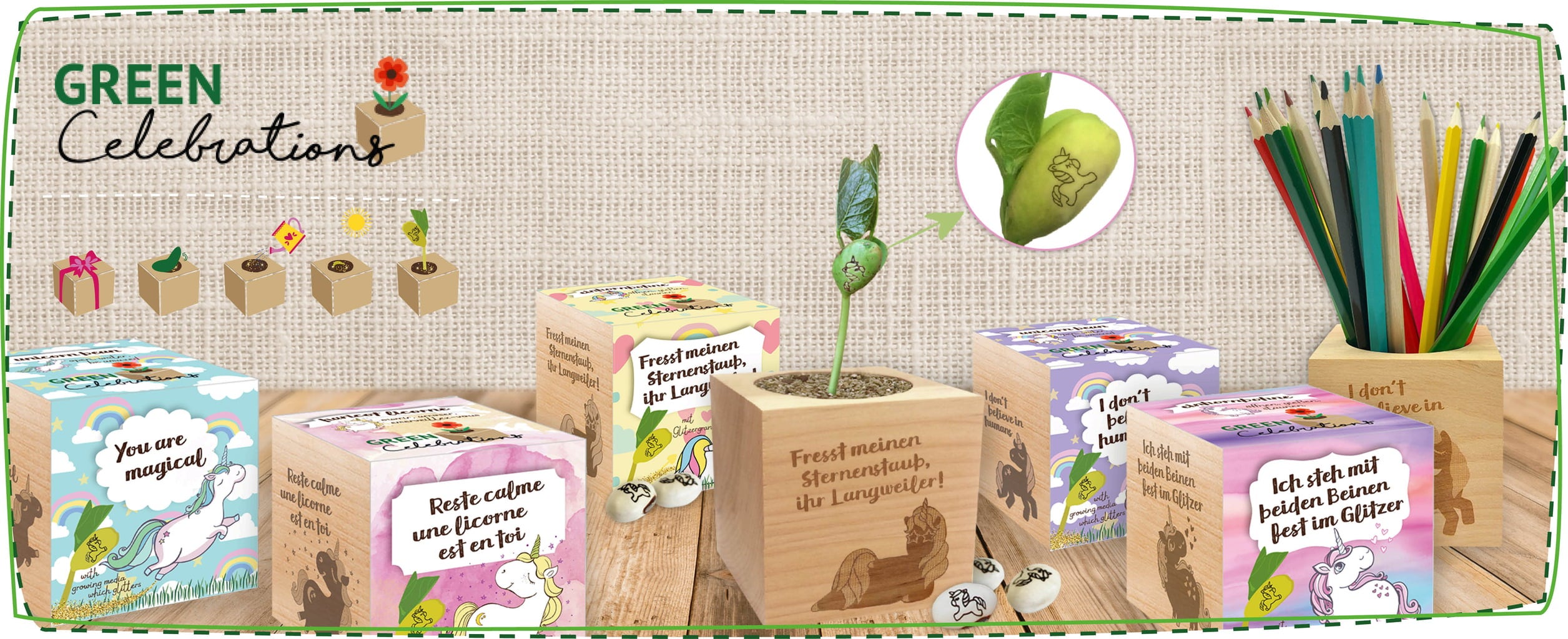 Als je op zoek bent naar een bijzonder en persoonlijk cadeau - dat uit het hart komt - dan ben je bij de Green Celebrations kubussen van elzenhout aan het juiste adres. De kubus is hoogwaardig gegraveerd en bevat plantenzaden en speciale groeikorrels.