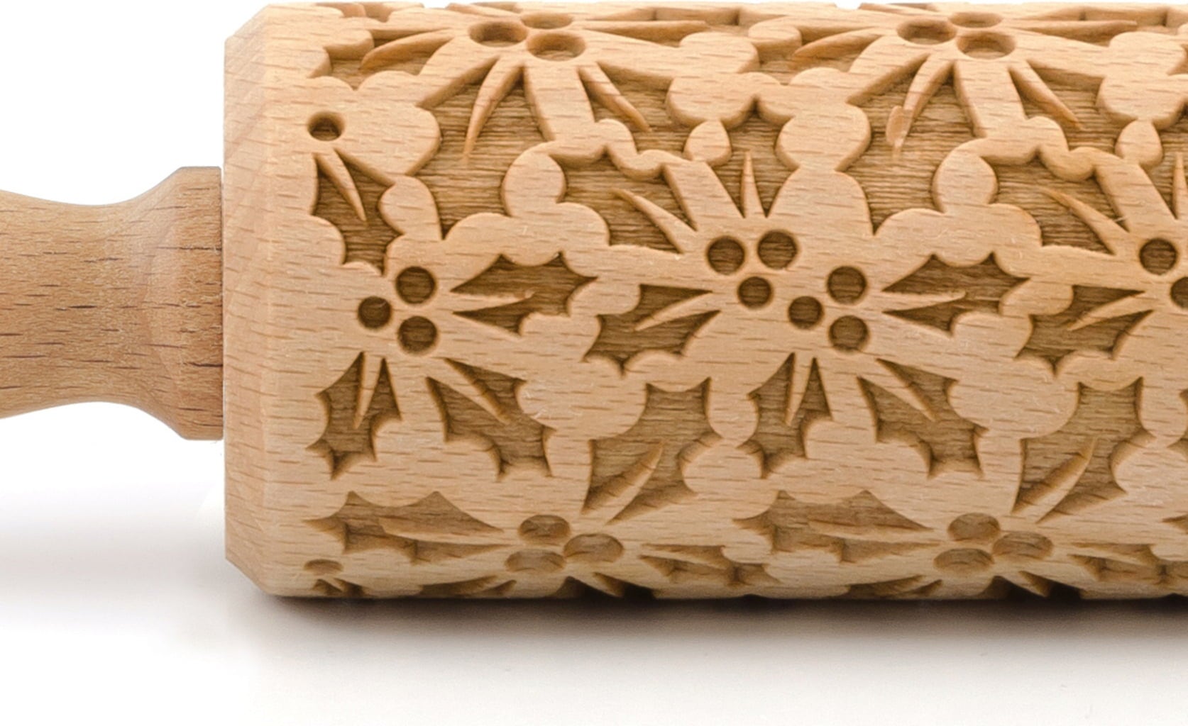Koekjes bakken en decoreren was nog nooit zo eenvoudig! Met deze zorgvuldig uitgesneden deegroller met een prachtig hulstpatroon maak je prachtig gevormde koekjes en biscuits die je onmogelijk kunt weerstaan. De deegroller is heel gemakkelijk te gebruiken: rol het over reeds uitgerold koekjesdeeg en gebruik vervolgens je favoriete uitsteekvormpjes om koekjes uit te snijden. Bak zoals gewoonlijk en geniet!