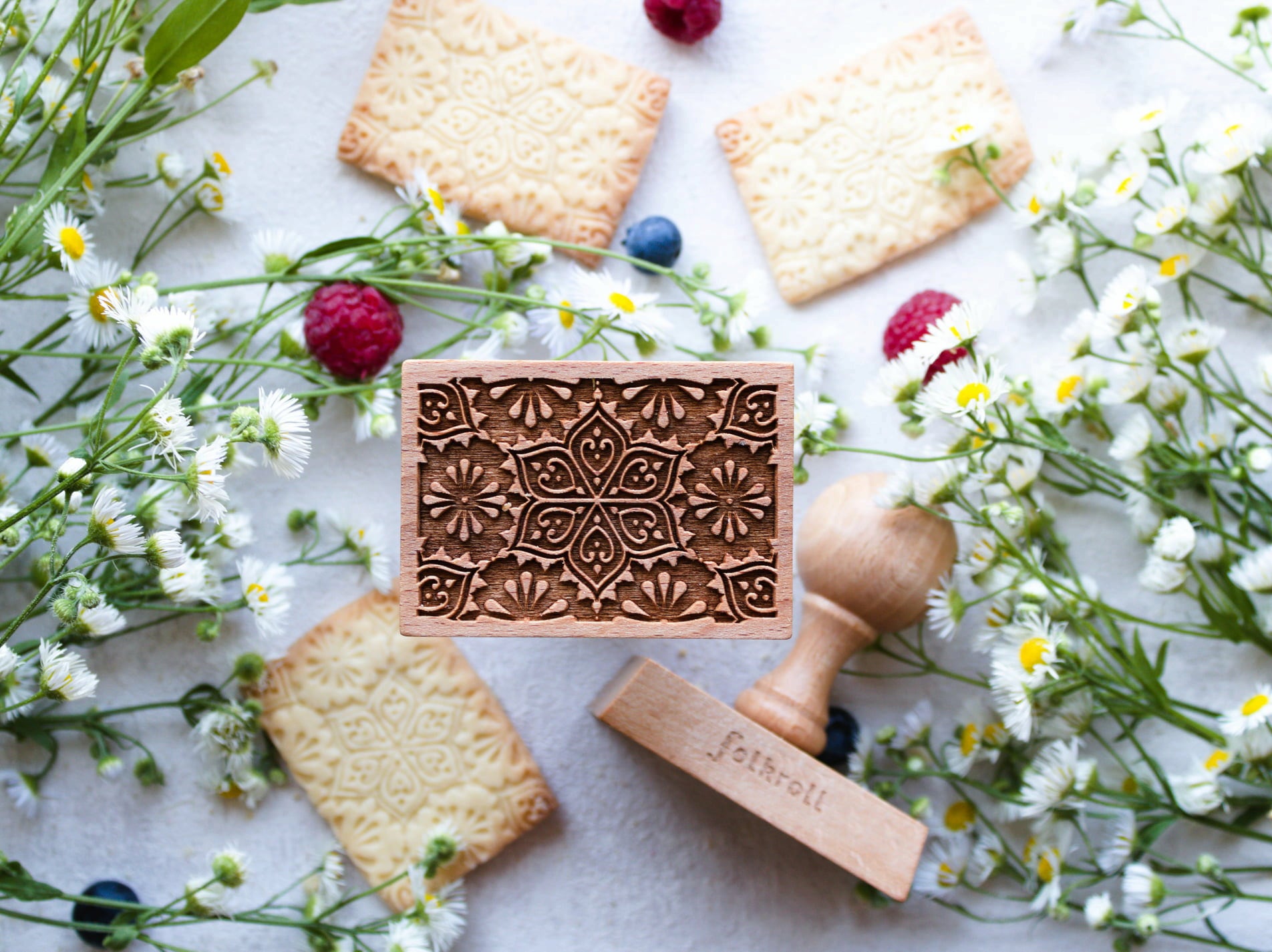 Het artistiek vormgegeven tulpenmotief van deze 3D-deegstempel van beukenhout is niet alleen in het seizoen in de lente of Pasen. Koekjes kunnen er op elk moment van het jaar mee worden versierd. Druk eenvoudig de koekjesstempel in het uitgerolde deel en snij of knip naar hartenlust uit met een deegwieltje of koekjesvormer, bakken, en je bent klaar! Zo ontstaan er prachtige kleine kunstwerkjes die ook leuk zijn om cadeau te geven.