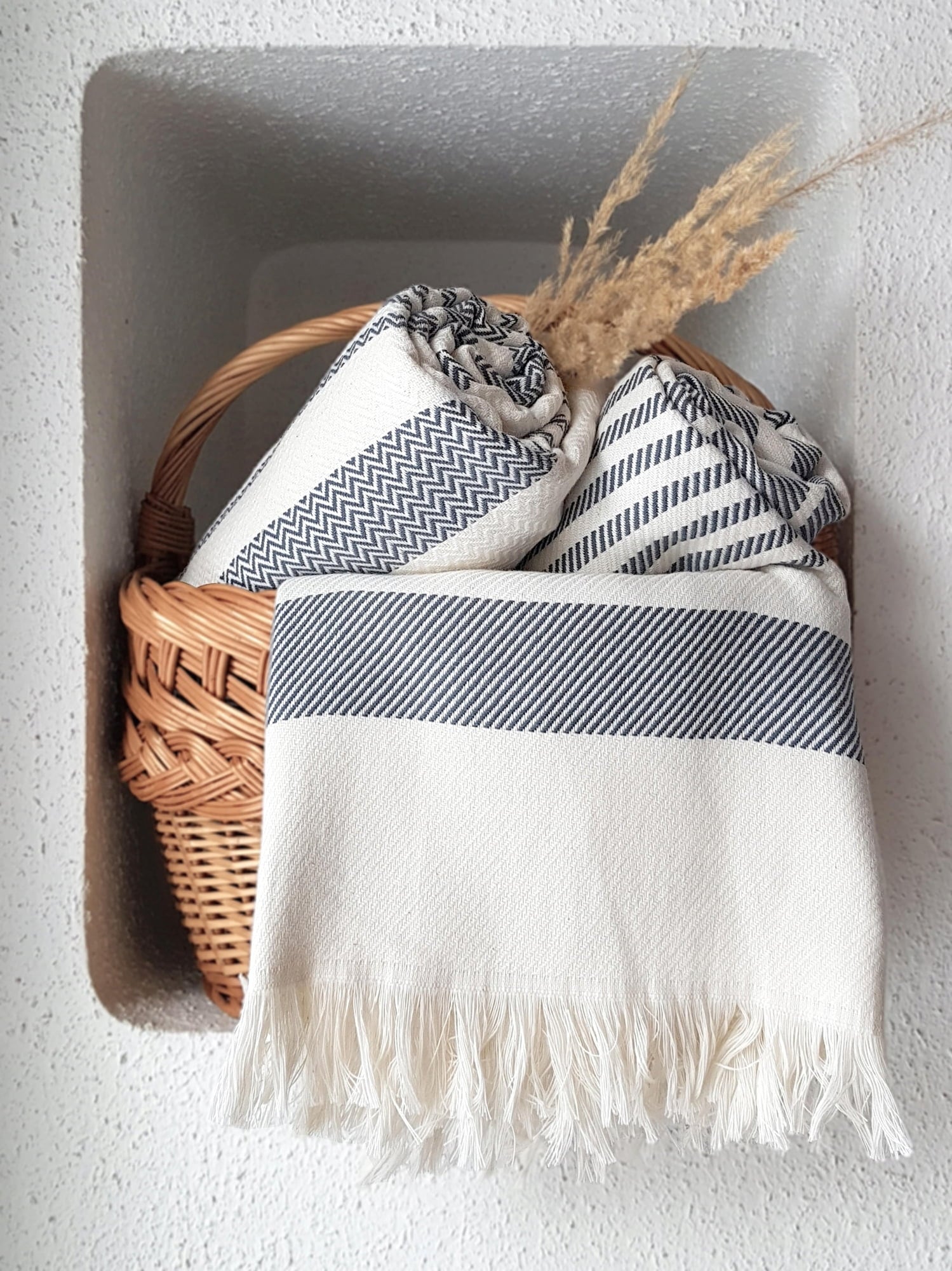Framsohn Hamamdoek - Strepen Patroon, Antraciet