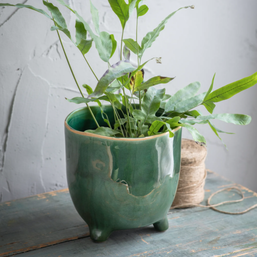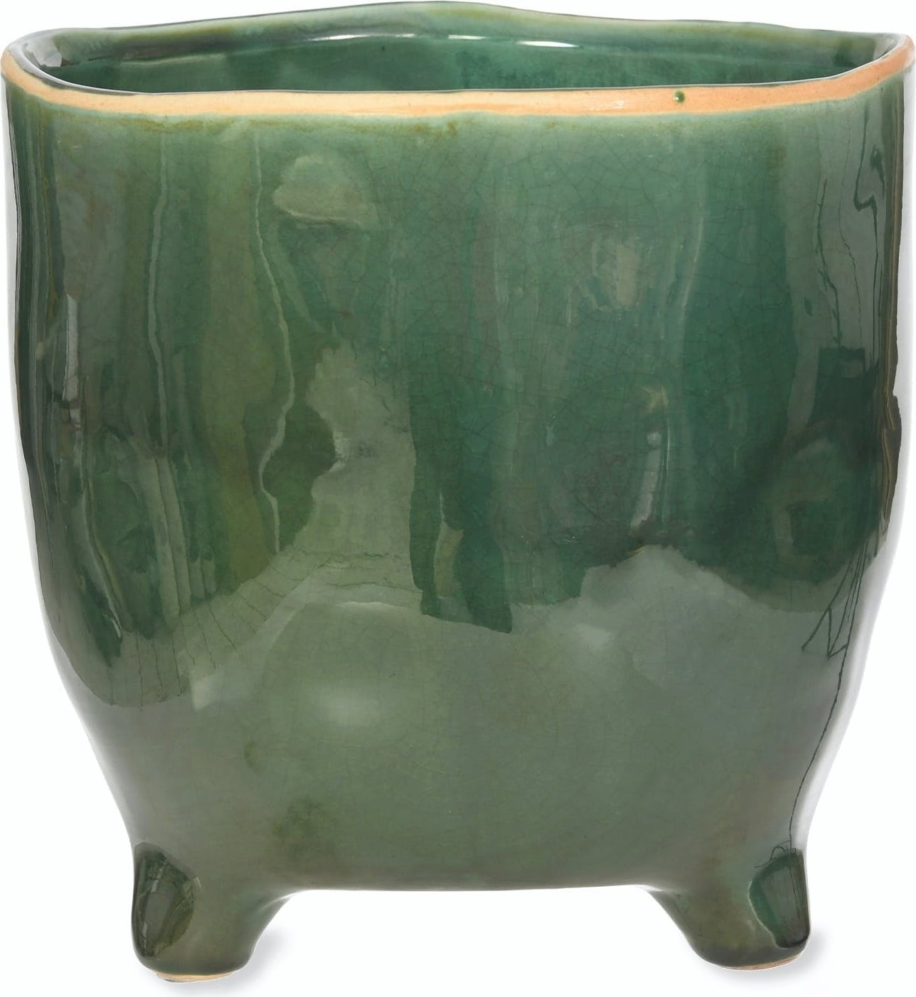 De unieke vorm, het stijlvolle craquelé-glazuur en het sterke groen maken van deze bloempot een bijzondere blikvanger op elke plank en tafel. Het is het perfecte frame voor cactussen en vetplanten en zet ze op een onweerstaanbare manier in de schijnwerpers. Zo kun je jouw vier muren een bijzonder accent geven en ze op een stijlvolle manier vergroenen