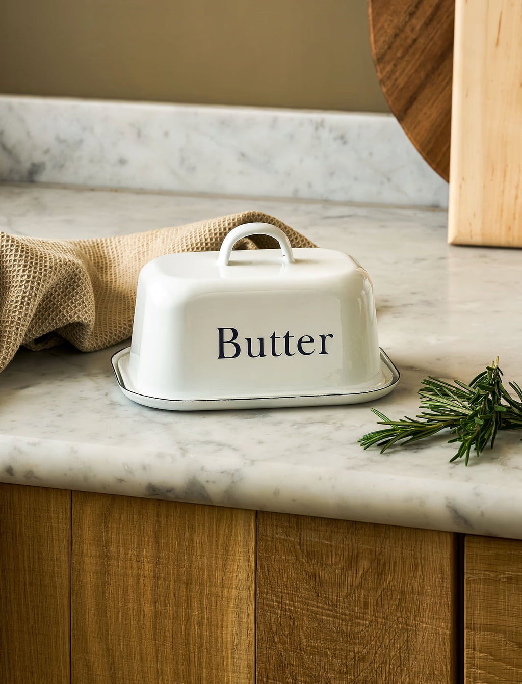 Het geëmailleerde botervlootje combineert tijdloze elegantie met praktische functionaliteit en houdt je boter altijd vers en stijlvol - een charmant hoogtepunt voor elke keuken. Dankzij de robuuste emaillaag is het bijzonder duurzaam, gemakkelijk schoon te maken en ideaal voor dagelijks gebruik.