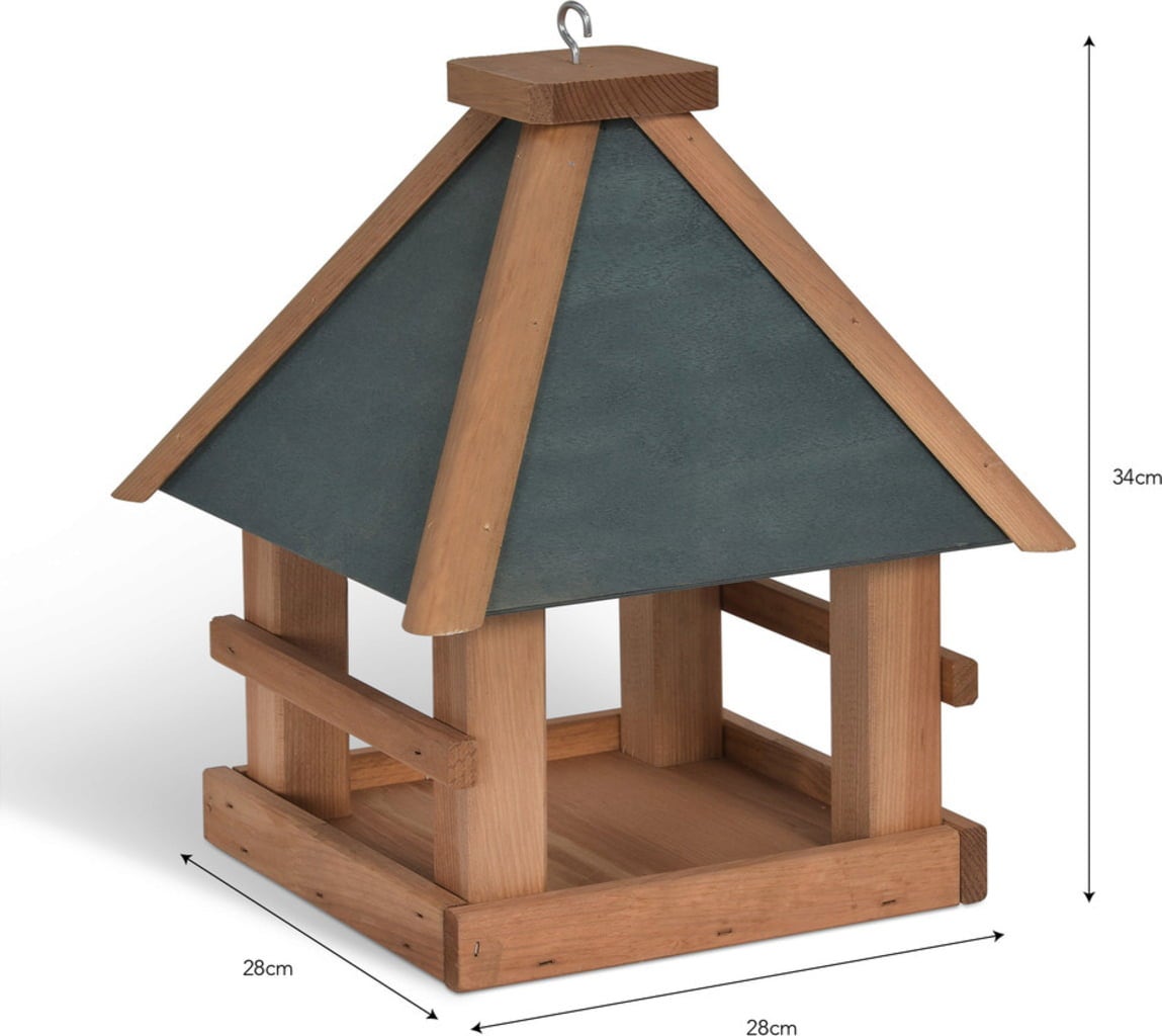 Deze prachtige grenenhouten voerbak is niet alleen een mooie accessoire voor de tuin, maar biedt uiteraard ook de mogelijkheid om wilde vogels te voorzien van zaden, noten en andere lekkernijen. Met de geïntegreerde haak kan de voerbak eenvoudig aan een boom of houder worden bevestigd.