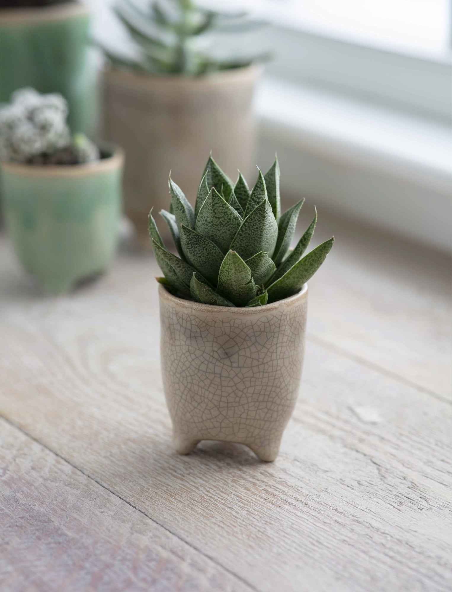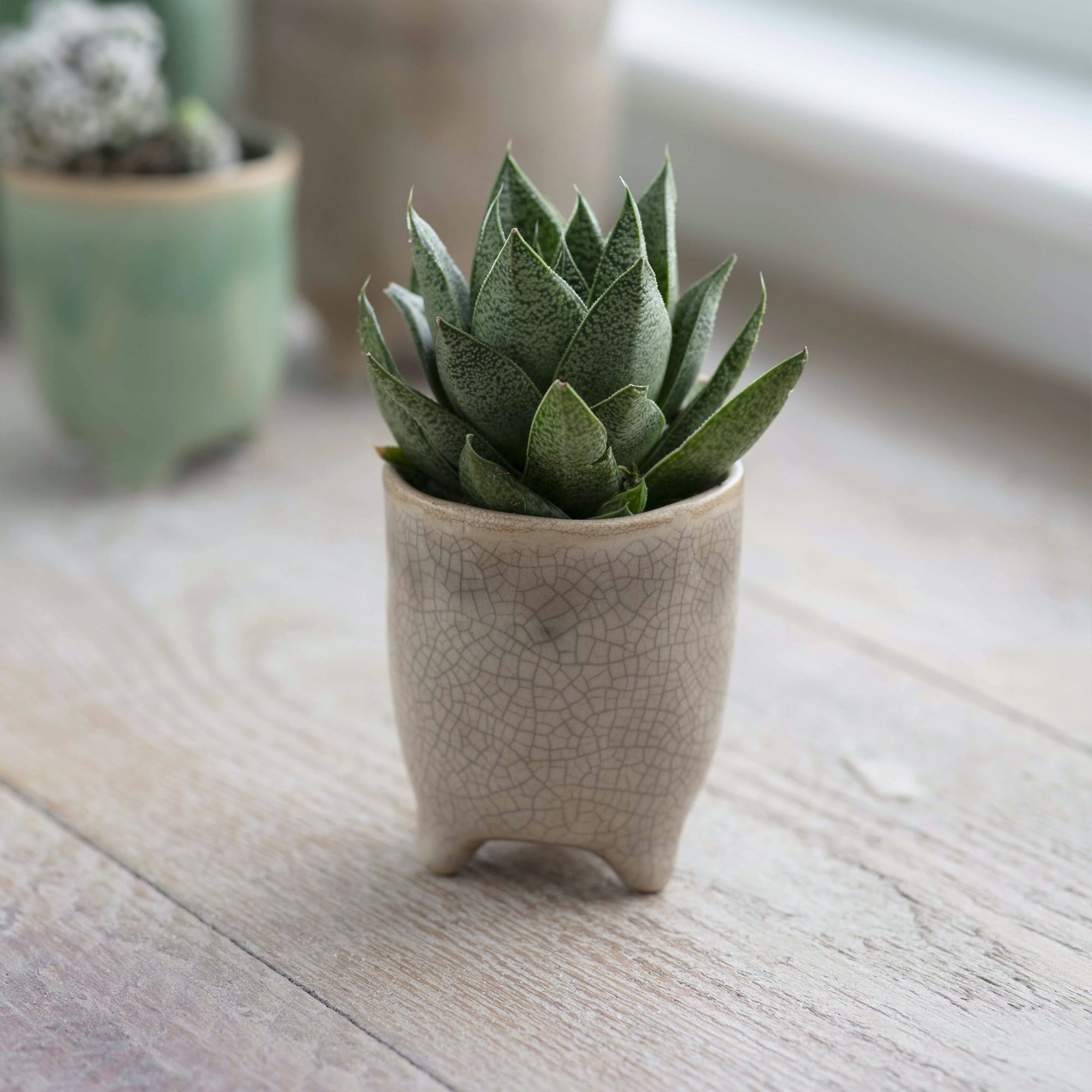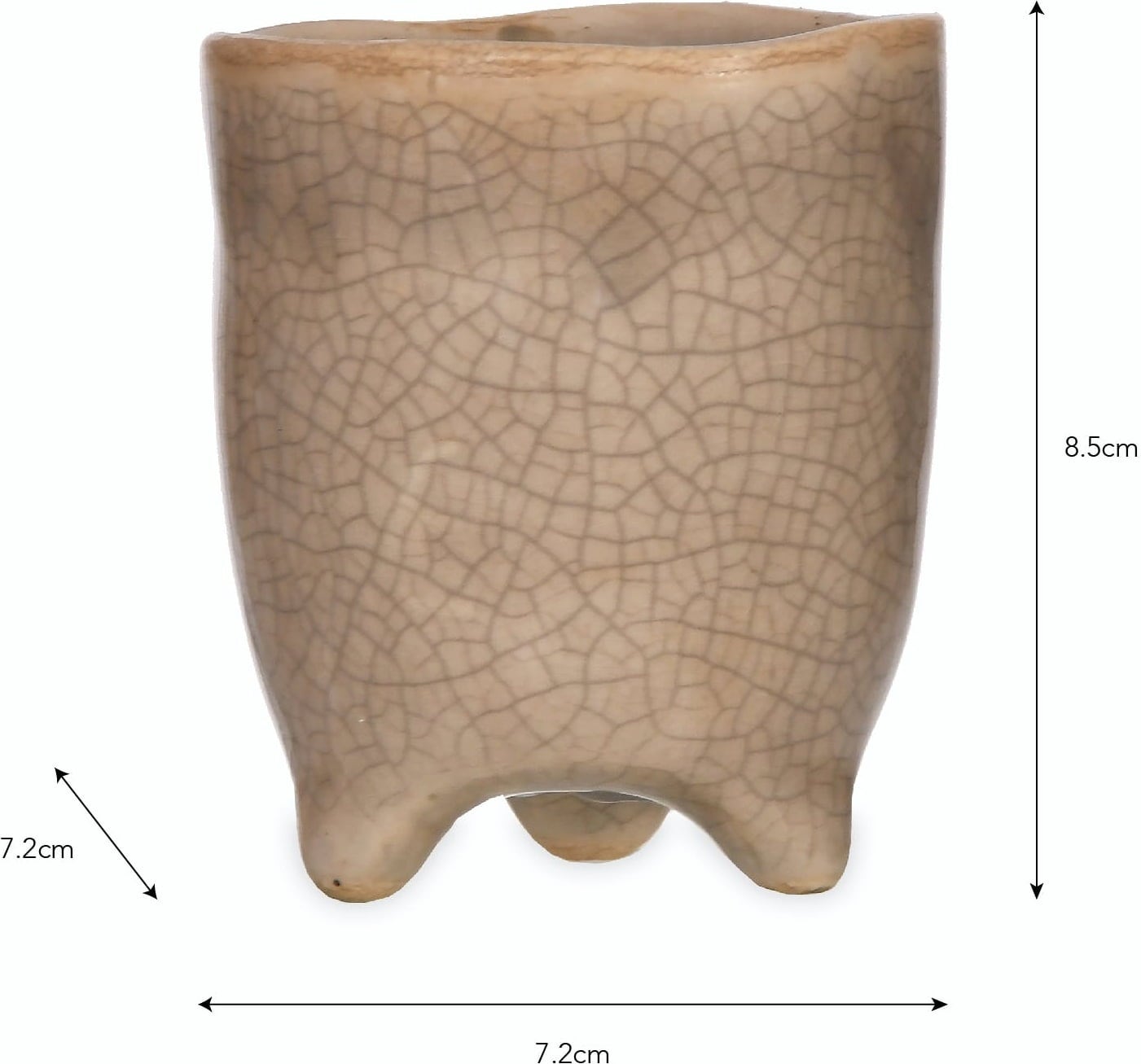 De prachtige bloempot springt echt in het oog! Hij is ontworpen met een prachtig rustiek glazuur in een zachte steenkleur en is gemaakt van keramisch materiaal. Er zit een rubberen pad op elke poot voor een stevige stand en om krassen op je meubels te voorkomen. Laat je cactussen of vetplanten op hun mooist uitkomen!