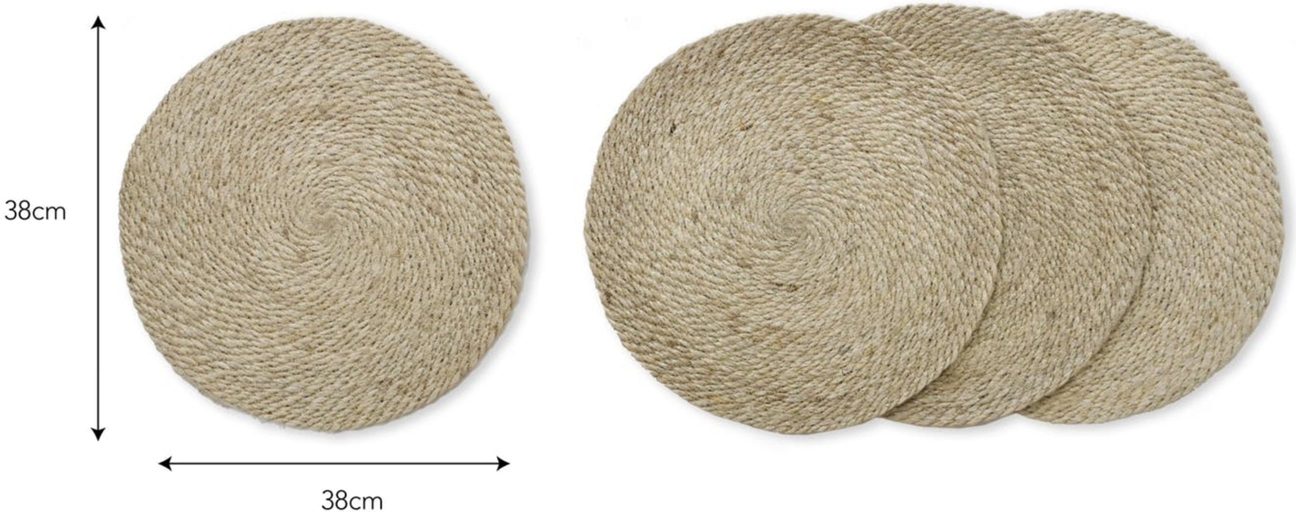 Deze placemats van jute van hoge kwaliteit geven de tafel een vleugje elegantie en beschermen hem ook tegen lelijke vlekken. Ze betoveren door hun natuurlijke uitstraling en geweldige kwaliteit, waardoor ze onmisbare accessoires zijn voor een smaakvol gedekte tafel.