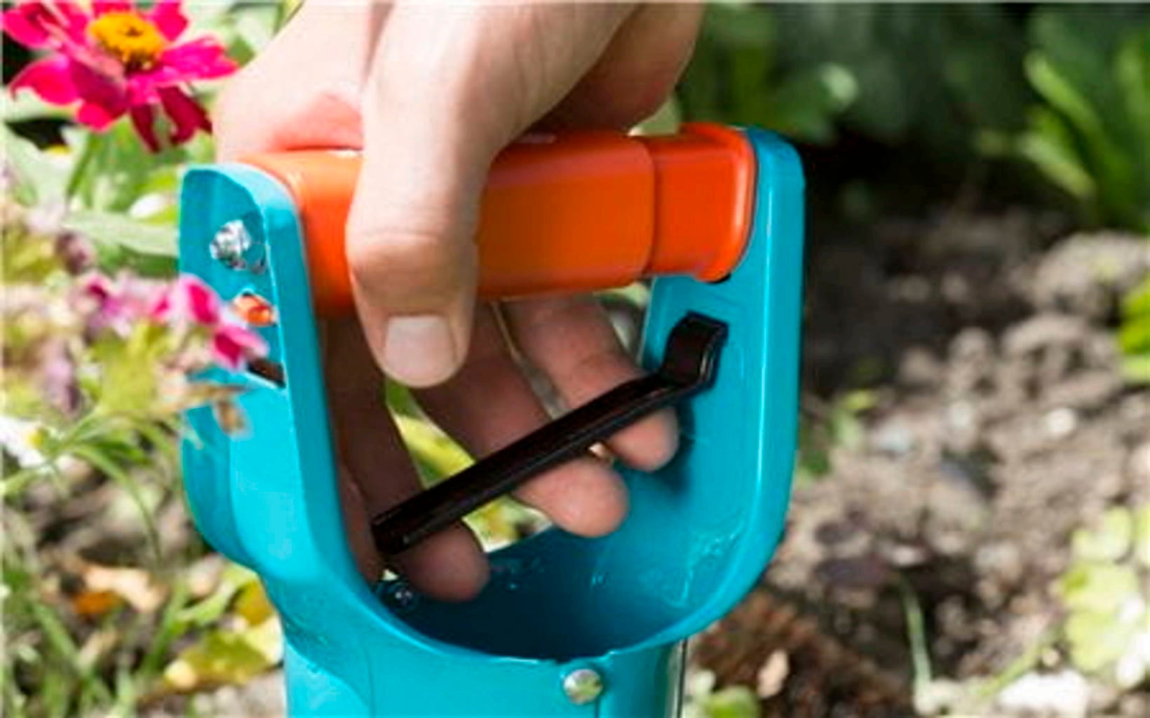 Met de bloembollenplanter van GARDENA plant je in een handomdraai bloembollen. De automatische ontgrendeling van de steel duwt de grond effectief opzij. De diepteschaal geeft een duidelijk overzicht. Het gereedschap is optimaal beschermd tegen corrosie dankzij de hoogwaardige materialen van hoogwaardig staal en thermohardende coating.