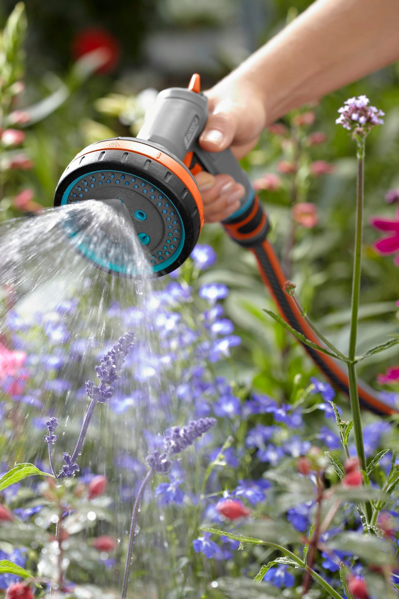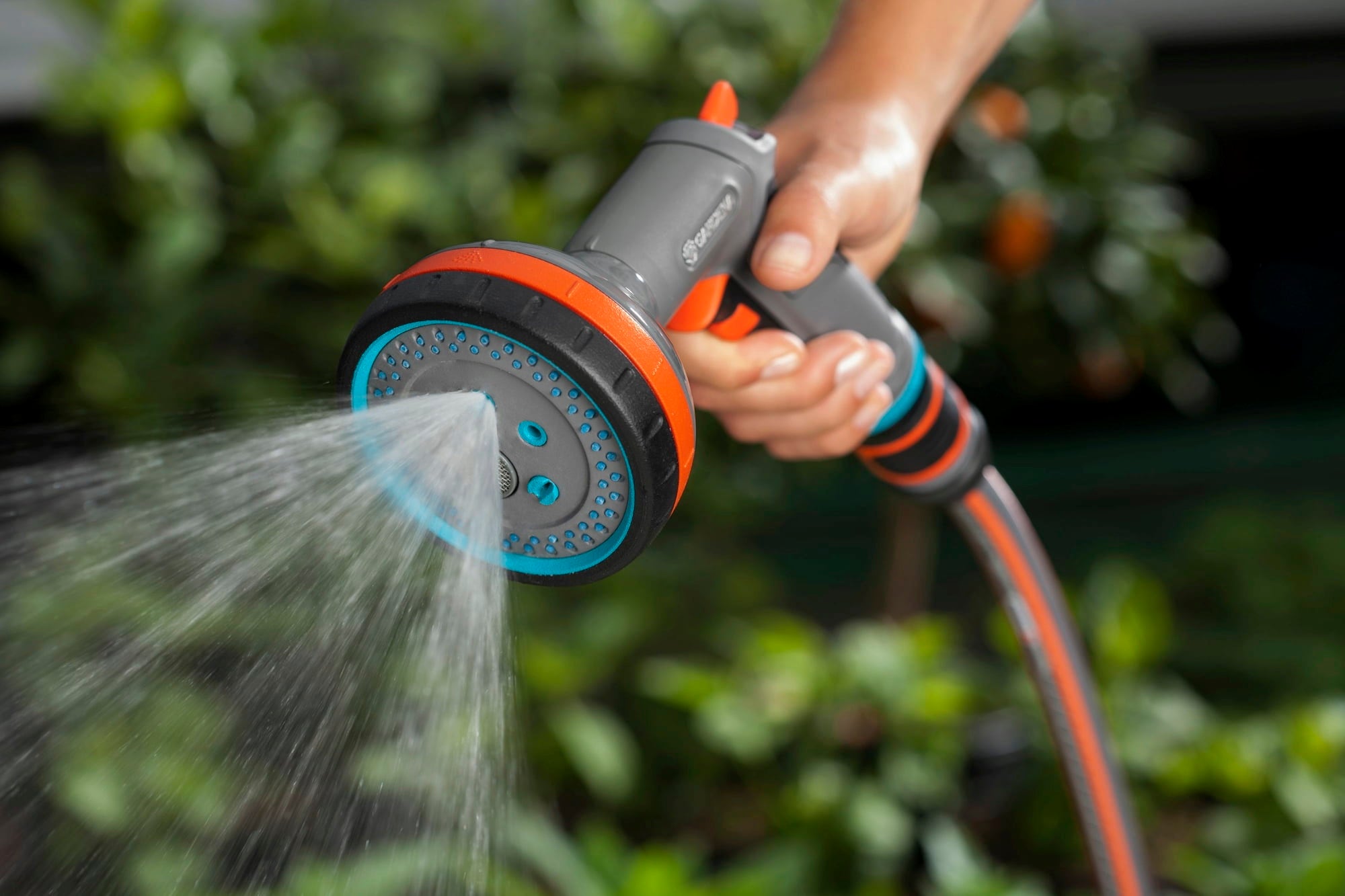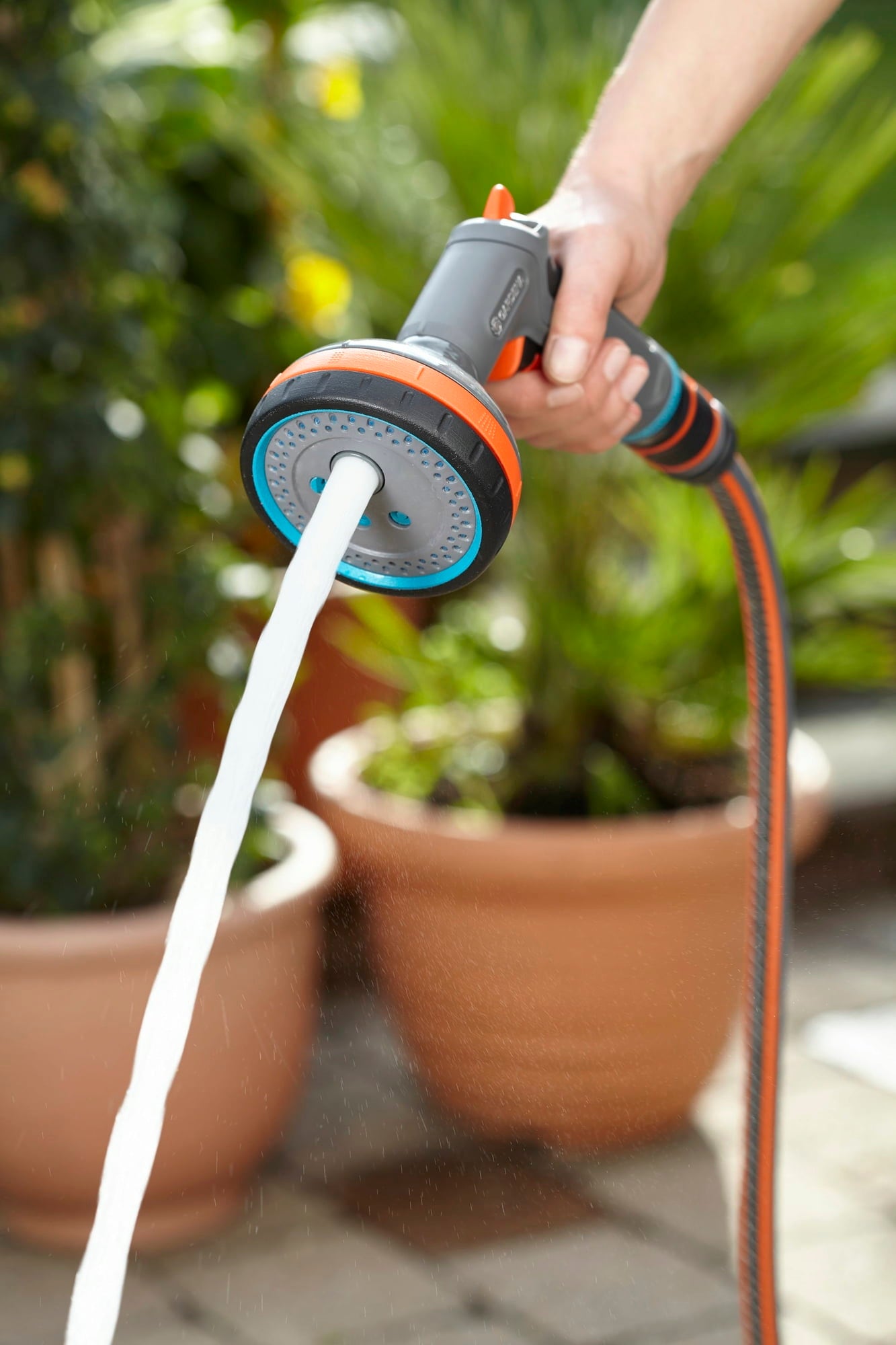 Deze hoogwaardige multi sproeikop overtuigt door zijn talrijke reinigings- en bewateringsmogelijkheden en zijn bijzonder comfortabele bediening. Hij kan vrijwel elke taak in de tuin, maar ook op terras en balkon aan.