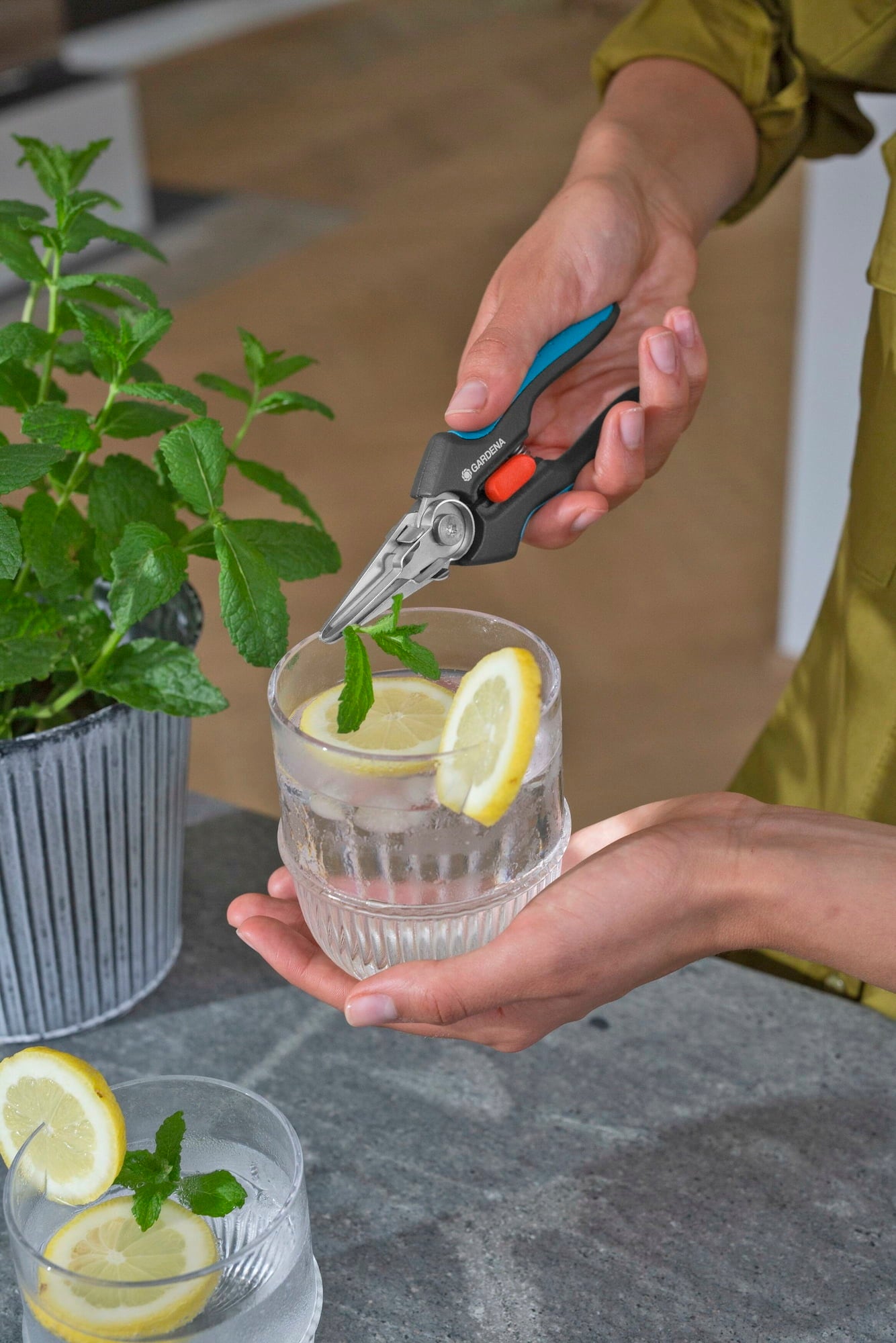 De GripCut snijdt moeiteloos kruiden en houdt ze tegelijkertijd stevig vast, zodat je altijd één hand vrij hebt. Hierdoor valt er niets en kun je met je andere hand een kom of zeef vasthouden, zodat je niets op de grond hoeft te zetten. Met de vergrendeling met één hand kun je de schaar daarna veilig sluiten en opbergen.