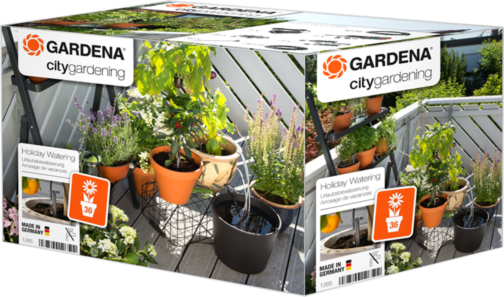 Ga op vakantie en je planten worden goed verzorgd met het Gardena vakantiebewateringssysteem. Hiermee kun je tot 36 potplanten water geven. Een timer start de bewatering elke dag gedurende één minuut. Met de verdeler met 12 uitgangen kan de hoeveelheid water voor de verschillende planten worden aangepast. De laagspanningstransformator kan binnen en buiten worden gebruikt