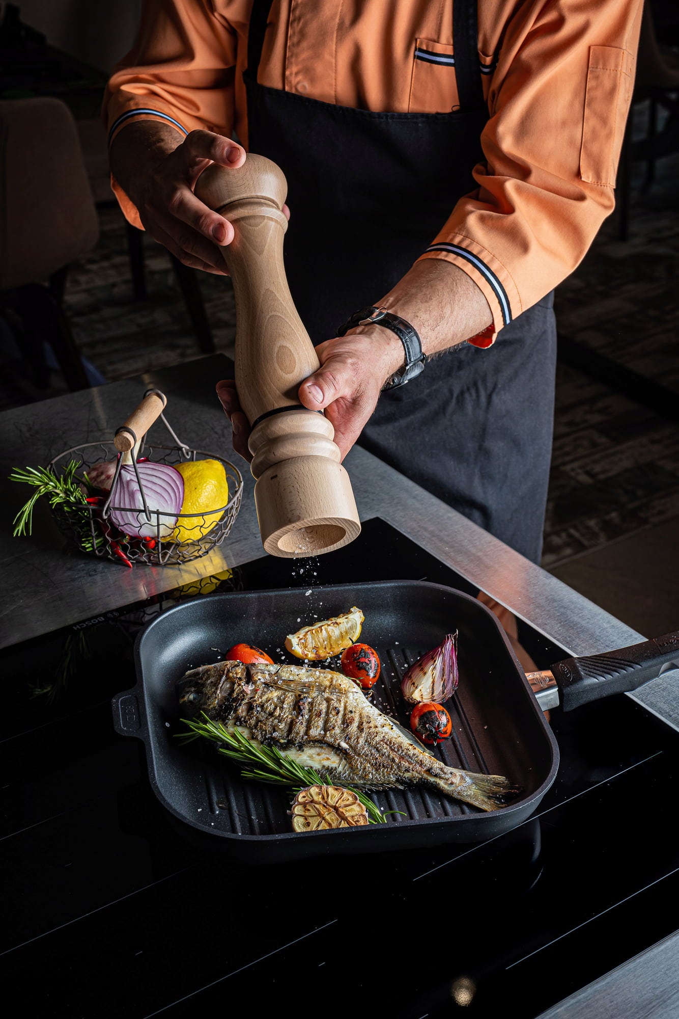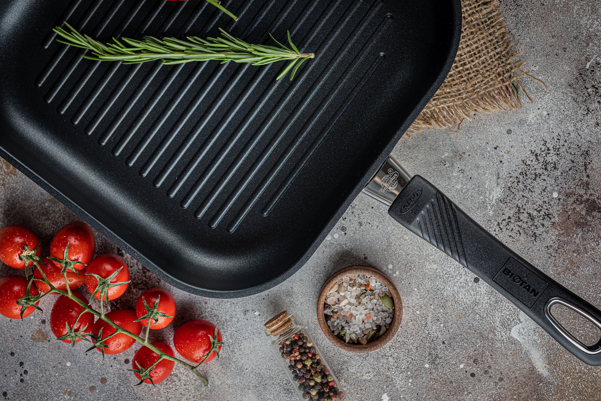 Om ook bij slecht weer geen sappige steaks en knapperige groenten te hoeven missen, presenteert GATROLUX ons een onderhoudsvriendelijk alternatief voor de klassieke houtskoolgrill. De geribbelde vorm van de pan geeft het etenl zijn typische smaak. Tegelijkertijd kan overtollig vet zich beter op de bodem verzamelen. De verder ontwikkelde BIOTAN PLUS-oppervlakteafwerking zorgt ervoor dat niets blijft plakken en de pan snel weer schoon is.