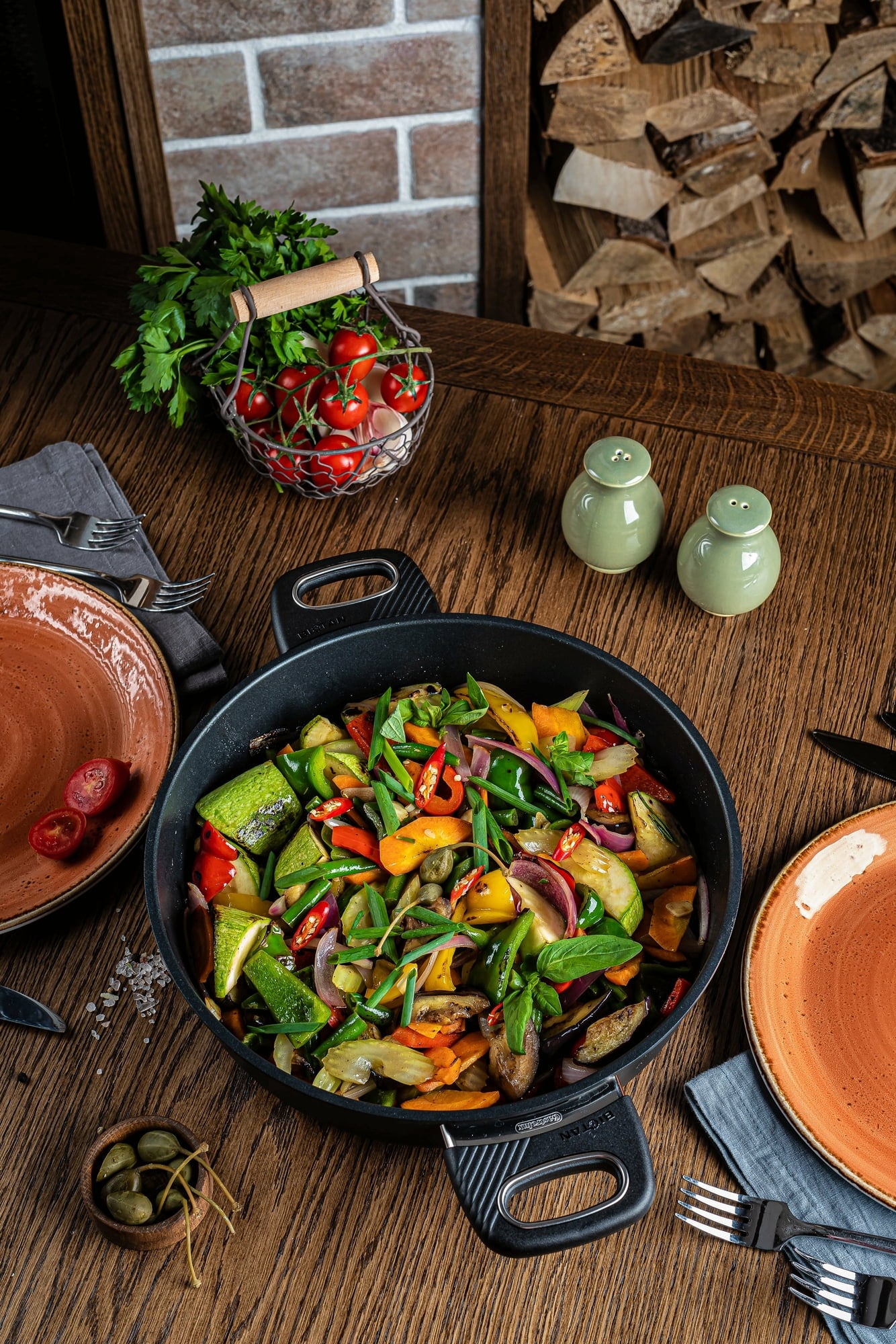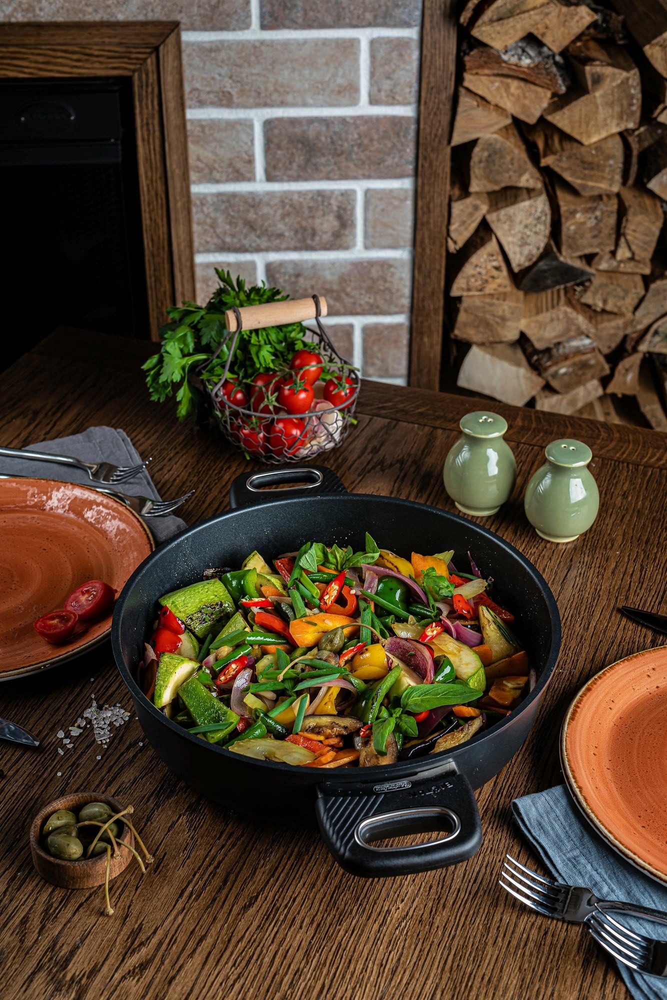 Zowel vleesliefhebbers als groentefanaten komen met dit kookgerei volledig aan hun trekken. Of je nu kiest voor knapperig gebraden gerechten of deze verfijnt met geraffineerde sauzen – het gebruikte aluminiumgietwerk verwarmt gelijkmatig en levert altijd de allerbeste resultaten.