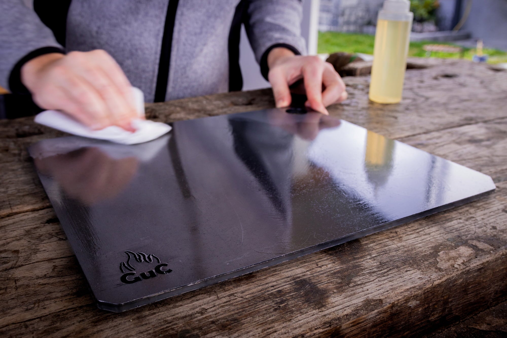 Let op: de bakplaat moet voor het eerste gebruik gebakken en geolied worden. Dit creëert een beschermende laag die roest voorkomt en voorkomt dat de bakwaren vastplakken.