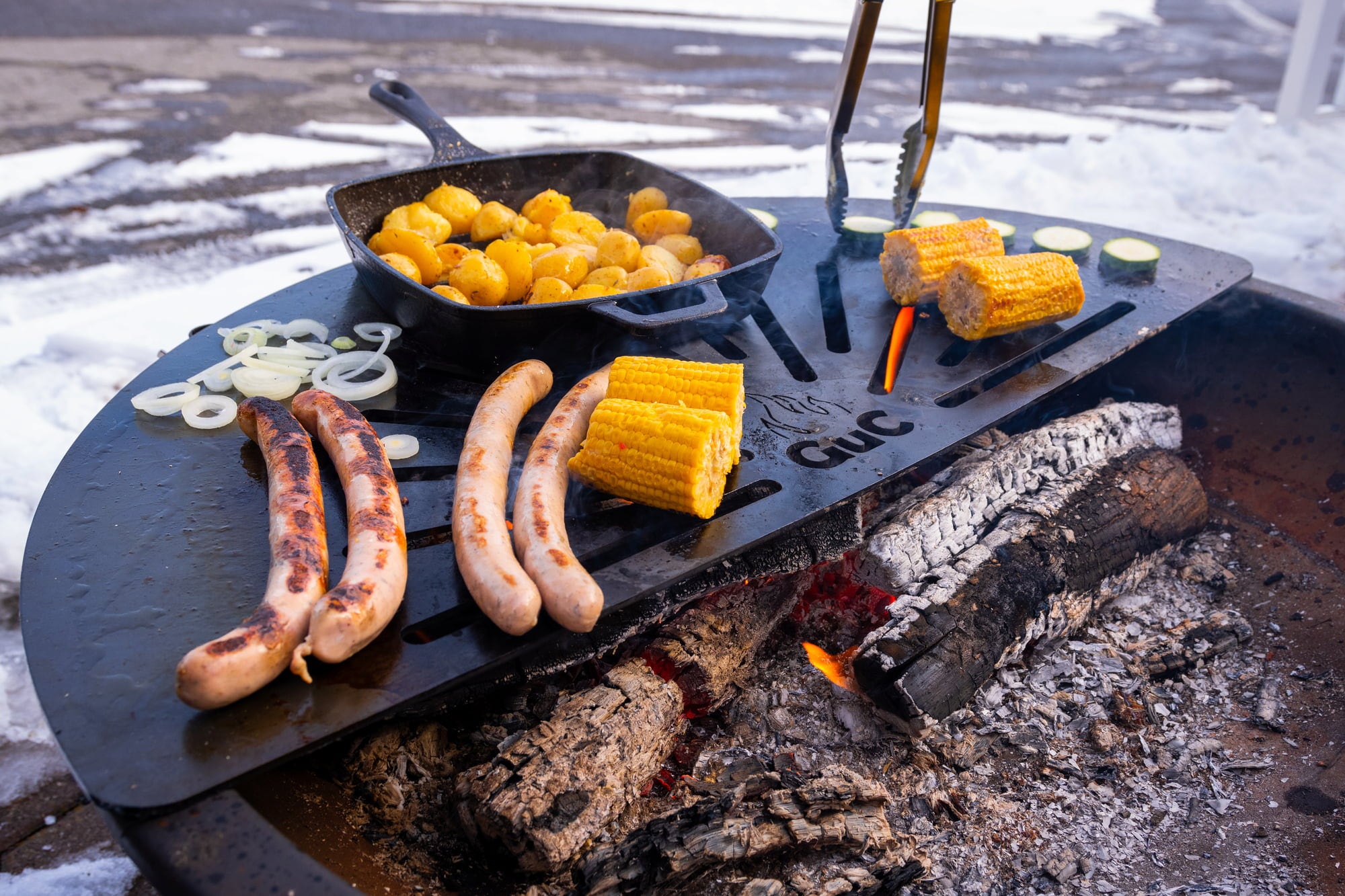 De eenvoudige grillplaat kan op verschillende manieren worden gebruikt en zorgt voor allround succesvolle grillresultaten. Dankzij de halvemaanvorm past hij niet alleen perfect op standaard vuurschalen van 80 cm, maar ook op kleinere vuurkorven, kampvuren en natuurlijk op de GuC vuurton.