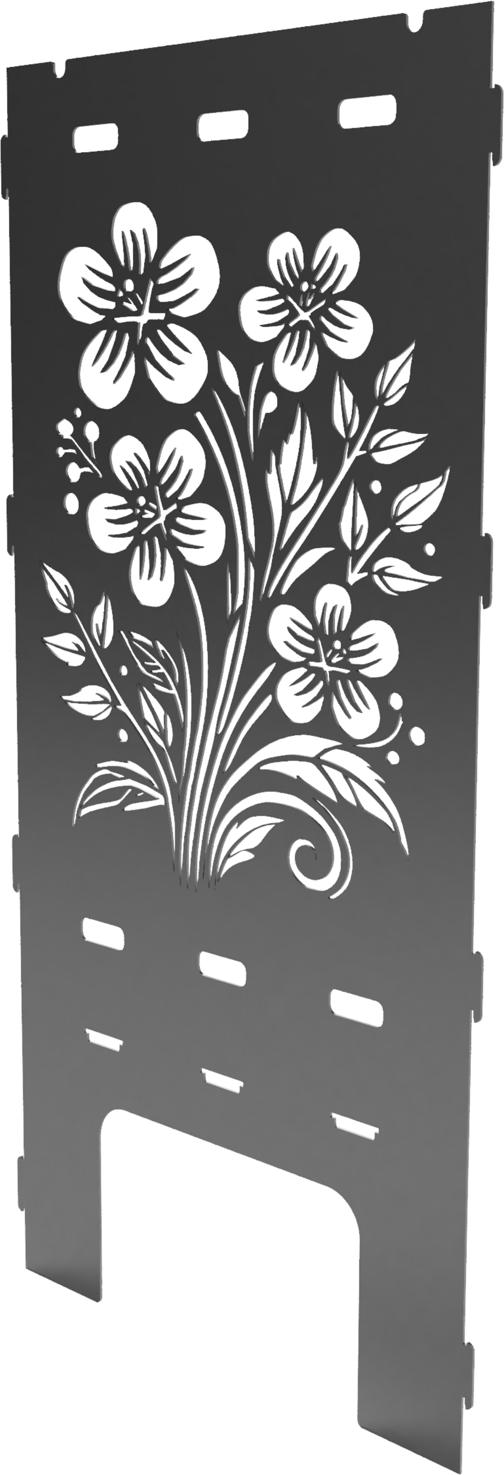 Dit stalen zijpaneel maakt indruk met zijn elegante bloemmotief en is een ideaal cadeau voor hobbytuiniers en iedereen die van de natuur houdt.