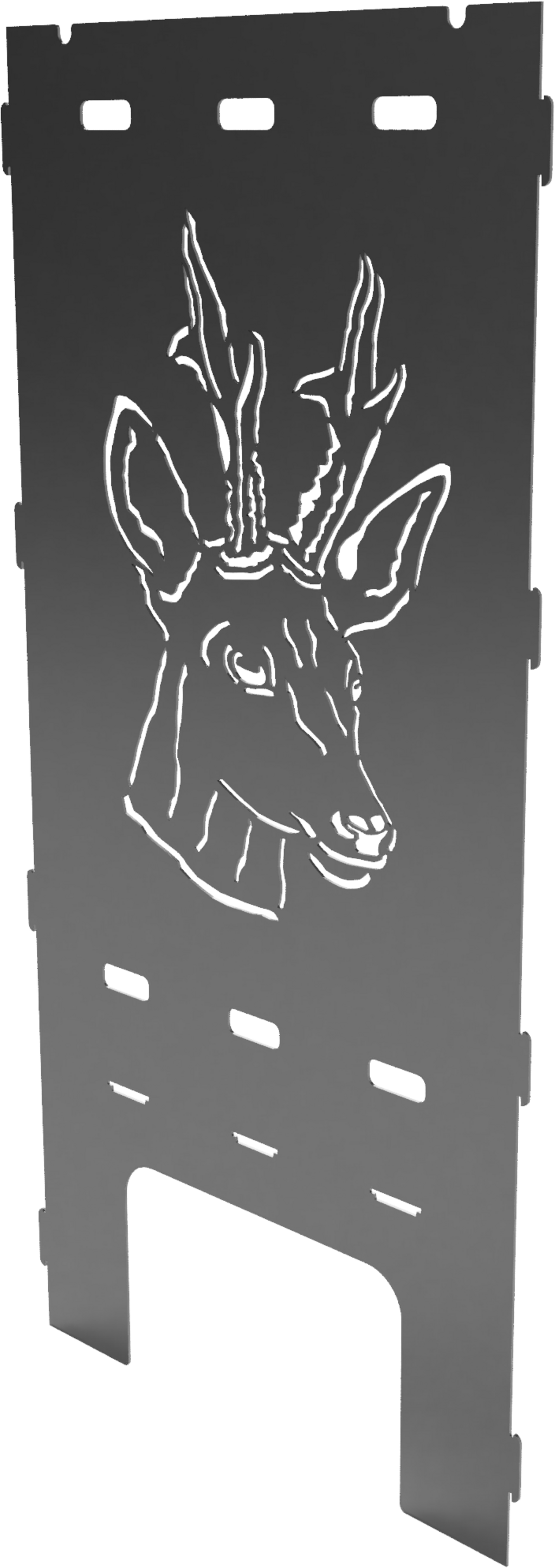 Deze stalen zijwand maakt indruk met haar stijlvolle, natuurlijke hertendesign – een echte blikvanger die je vuurkorf de perfecte finishing touch geeft! Daarnaast is ze voorzien van praktische inkepingen die gebruikt kunnen worden als houders voor grillspiesen. De vuurkorf is in een handomdraai gemonteerd en hult tuin, balkon of terras in een sfeervolle gloed – ideaal voor gezellige avonden.