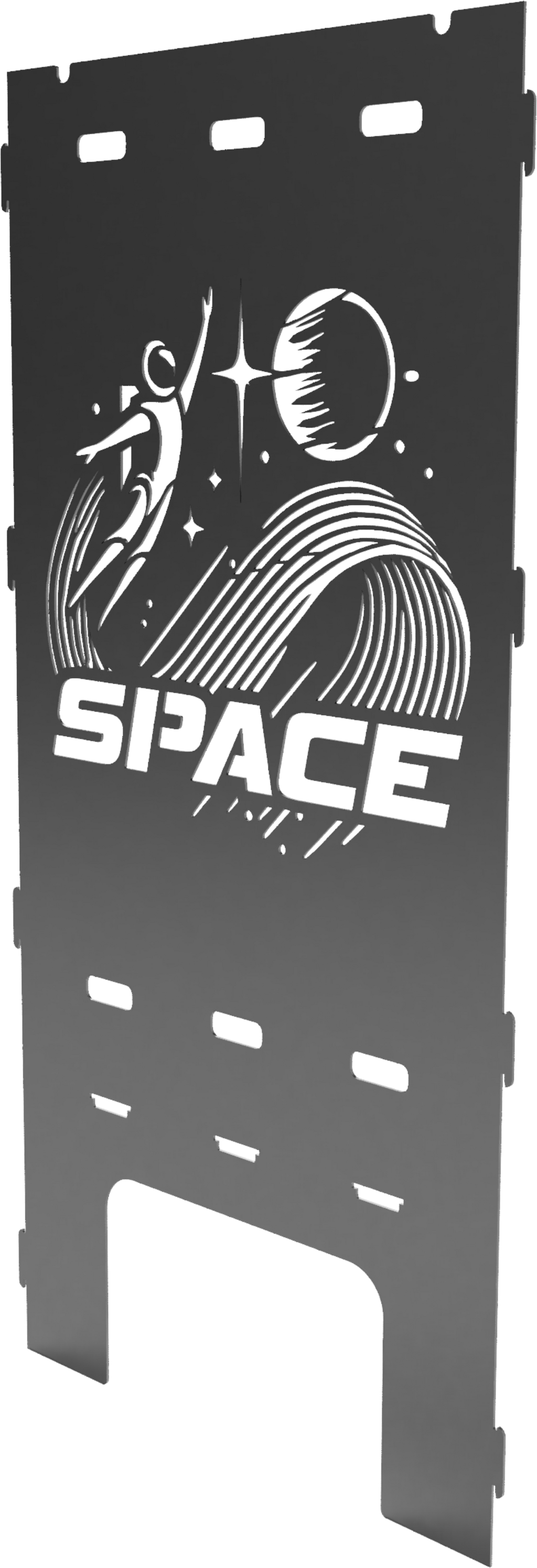 Dit stalen zijpaneel maakt indruk met zijn stijlvolle ruimtevaartdesign en is ideaal voor iedereen die enthousiast is over de oneindige uitgestrektheid van ons universum.