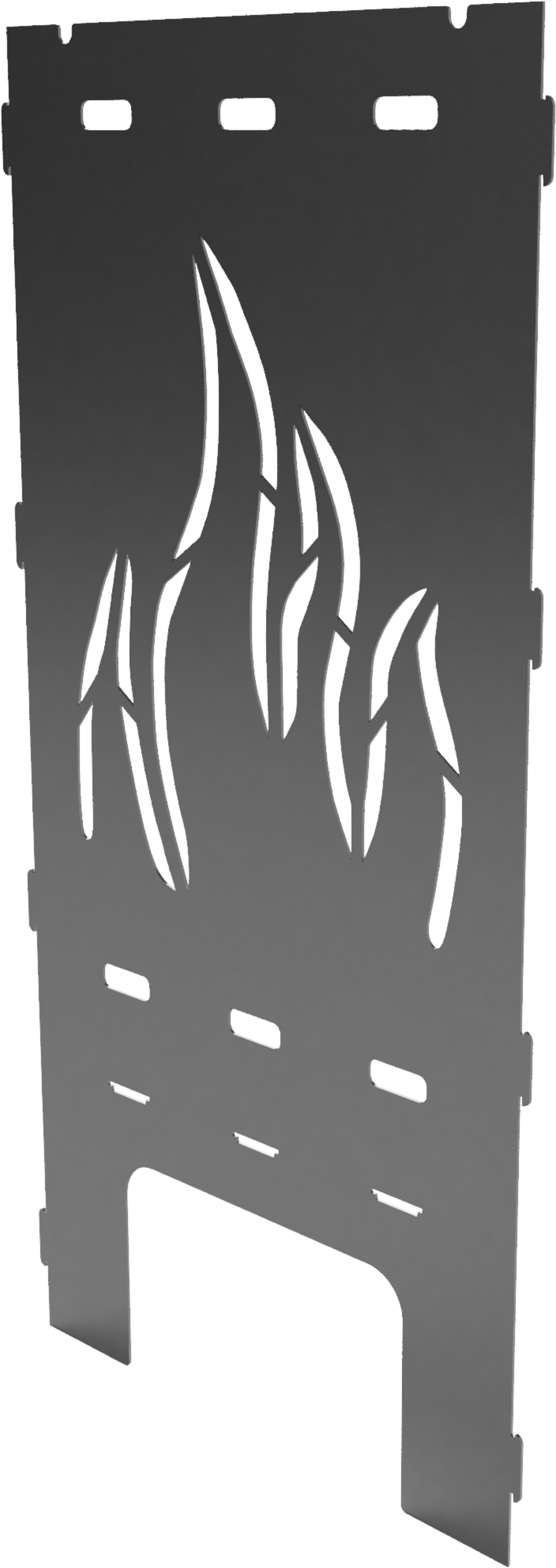 Deze stalen zijwand maakt indruk met haar stijlvolle, vurige vlammenontwerp – een echte blikvanger die je vuurkorf de perfecte finishing touch geeft! Daarnaast is ze voorzien van praktische inkepingen die gebruikt kunnen worden als houders voor grillspiesen. De vuurkorf is in een handomdraai gemonteerd en hult tuin, balkon of terras in een sfeervolle gloed – ideaal voor gezellige avonden.