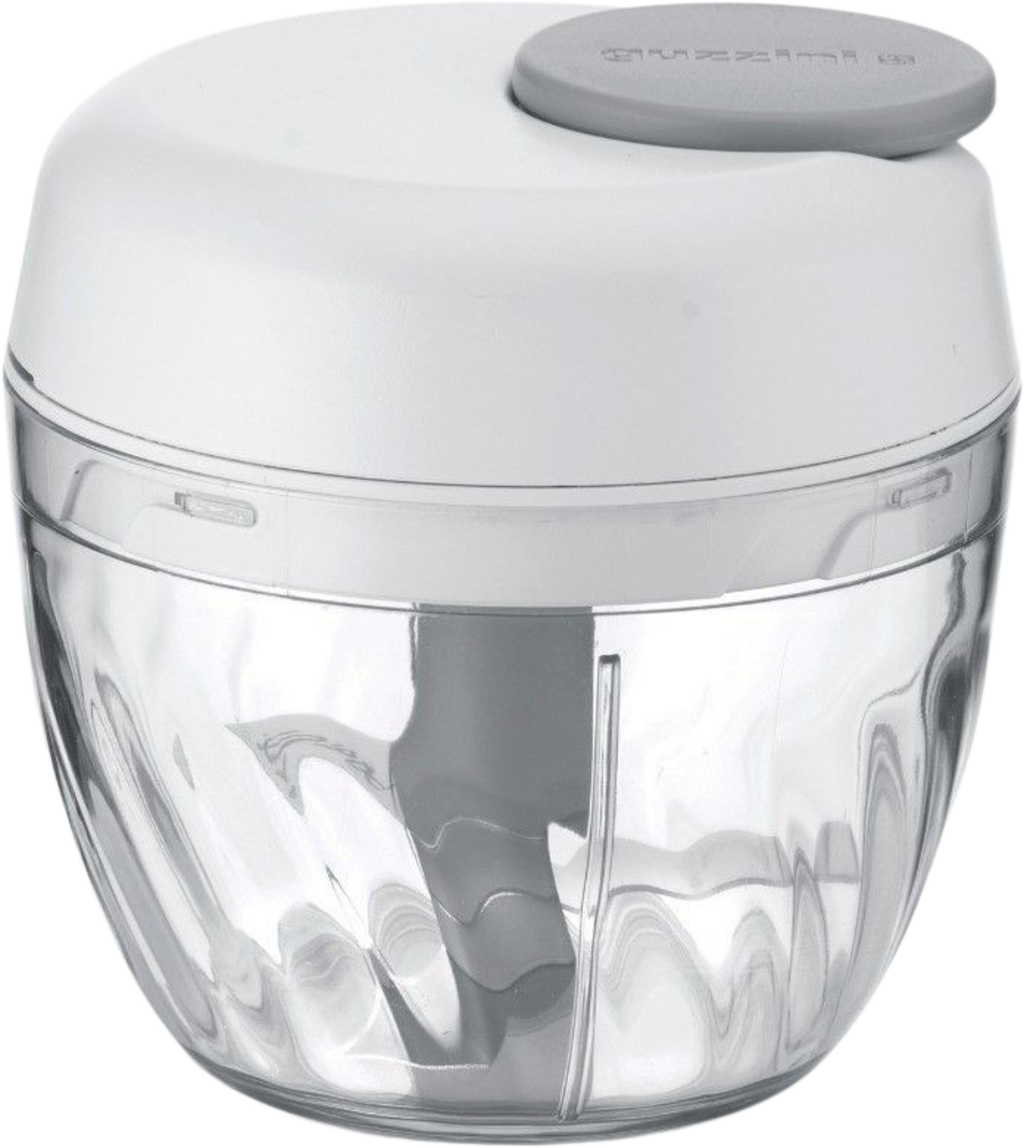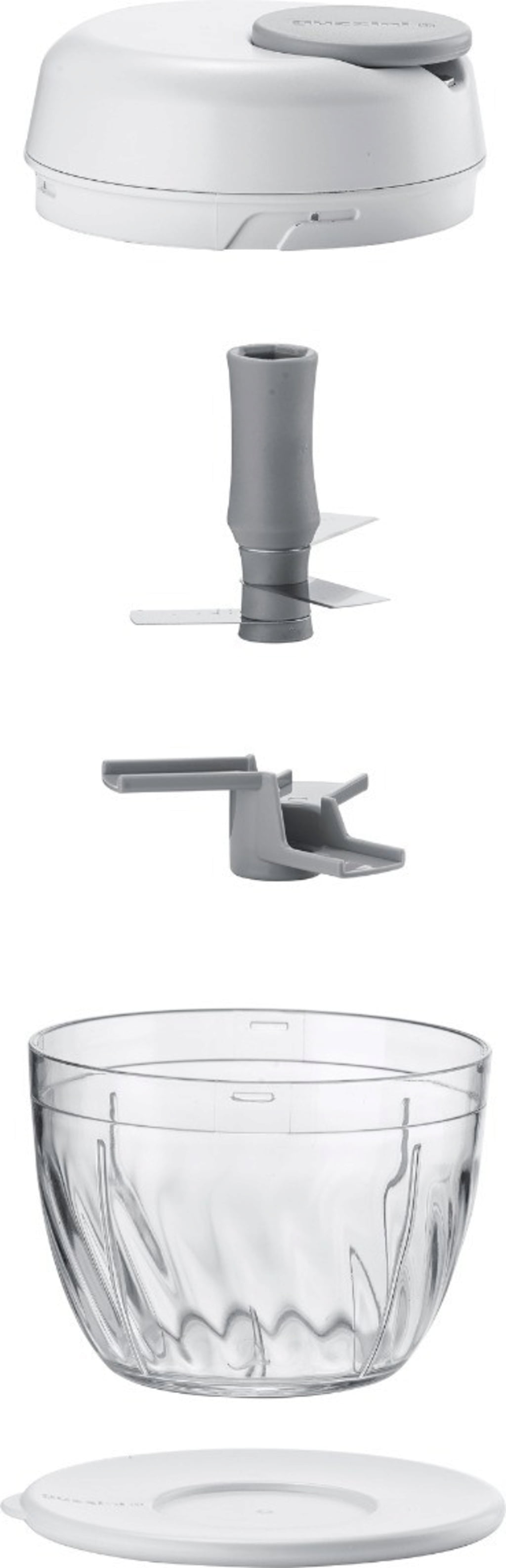Deze stijlvolle keukenhulp heeft het echt allemaal! Drie ultrascherpe snijmessen hakken in een mum van tijd harde groenten, kruiden, gedroogd fruit enz. fijn - en dat allemaal zonder elektriciteit. Het koordmechanisme maakt het mogelijk om in één beweging te snijden en te versnipperen, terwijl de antislipafdichting aan de onderkant zorgt voor stabiliteit en het goed sluitende deksel zorgt voor veilig werken. Een goed sluitend aromabeschermingsdeksel voor opslag in de koelkast wordt ook meegeleverd.