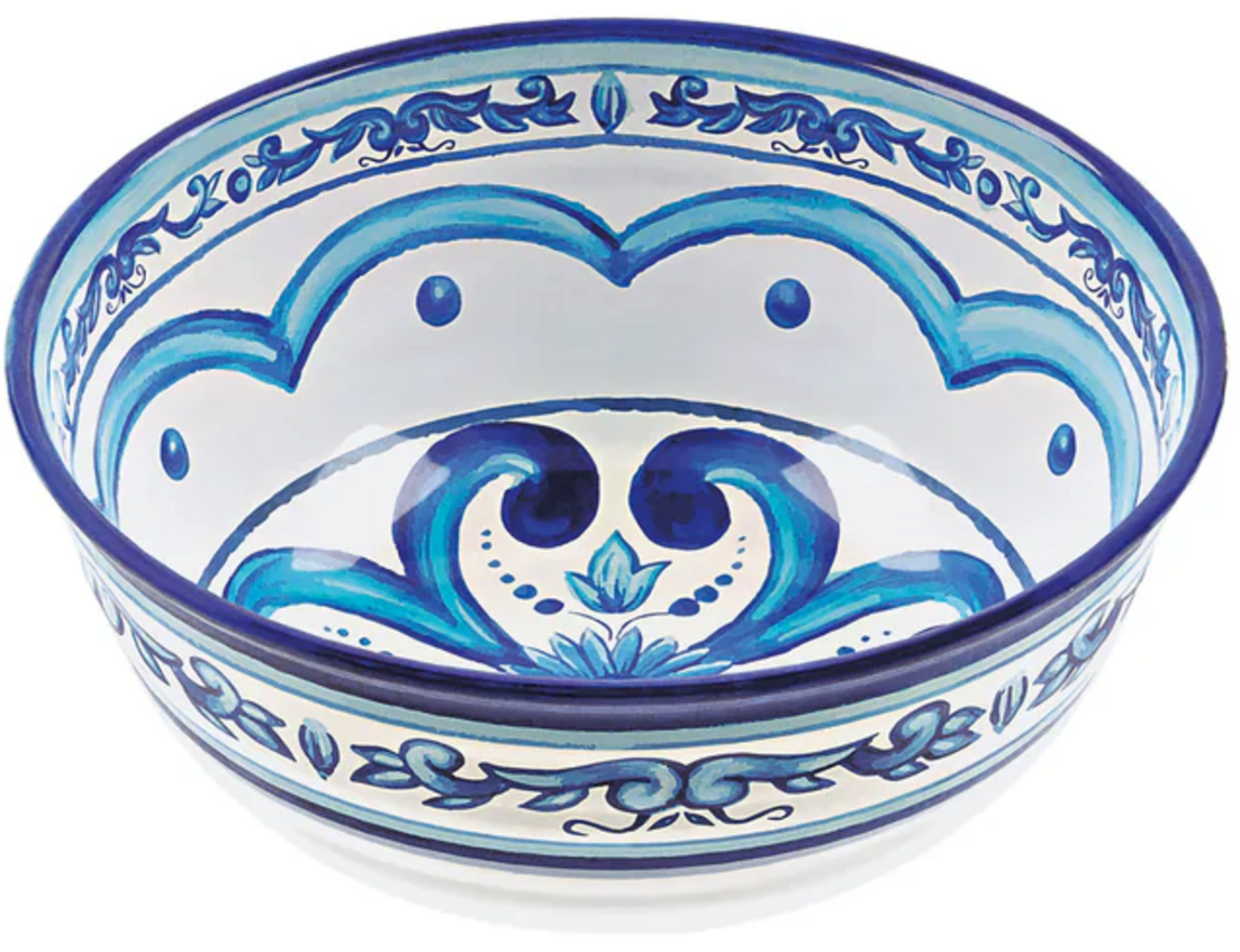Met deze kom is de tafel - in de tuin of in de eetkamer - snel en elegant gedekt! De kom gemaakt van robuust, BPA-vrij melamine en is licht en makkelijk in gebruik. Ondertussen vertelt het "Blues" design verhalen van de zee, levendigheid, vakantie en Italië.