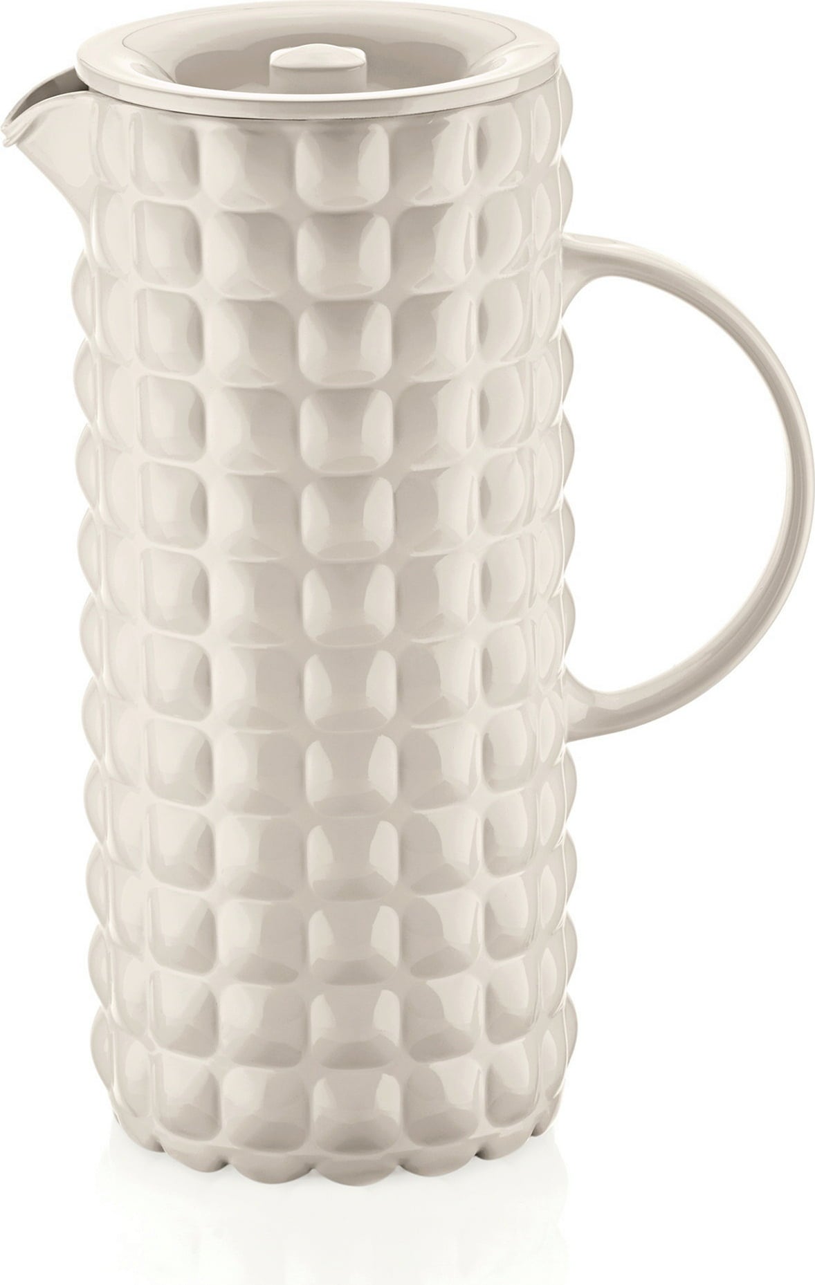 Deze prachtige karaf met deksel zet niet alleen visuele accenten, maar is ook onvergelijkbaar praktisch. Gemaakt van hoogwaardig en robuust acryl, is het bijzonder licht en daarom perfect voor balkons, terrassen en tuinen. Hun aantrekkelijke structuurontwerp, dat doet denken aan loodkristal of porselein, maakt ze ook tot een hoogtepunt aan tafel.