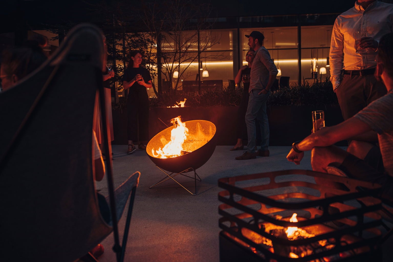 Dankzij de tweetraps luchttoevoer zorgt de BOWL 70 voor een bijzonder rookarm vuur. De solide roestvrijstalen stervoet garandeert een stevige stand en geeft de vuurschaal een moderne, zwevende look. De uitneembare aslade vergemakkelijkt het schoonmaken, terwijl optionele accessoires zoals een plancha of grillrooster kunnen worden gebruikt om in een handomdraai een volwaardig kook- en grilloppervlak te creëren.
