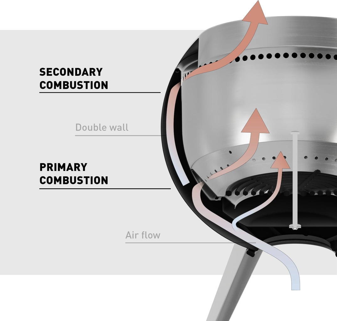 • Rookvrij en efficiënt: Tot 2 uur vuur zonder rookontwikkeling bij gebruik van 10-12 kg pellets.