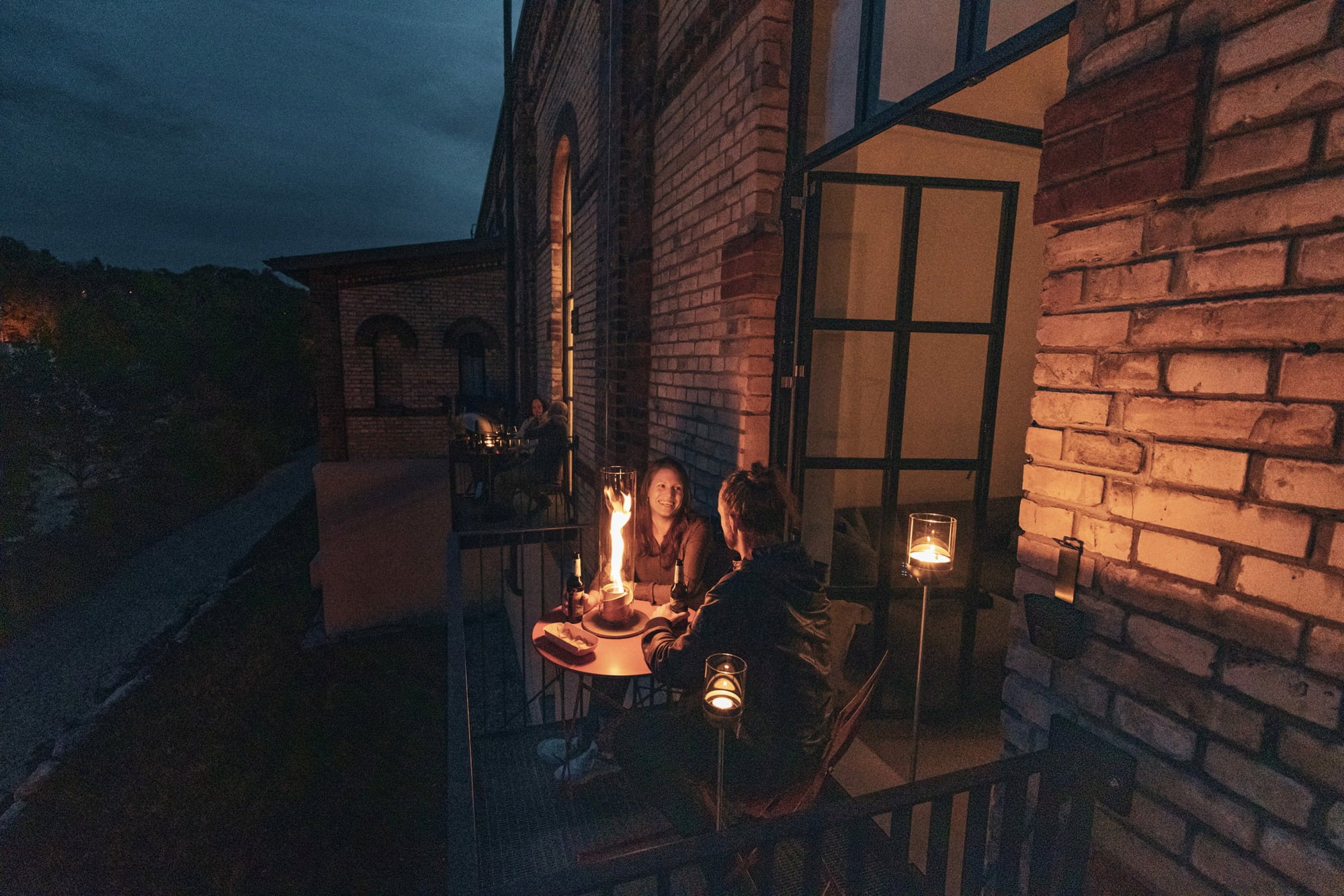 Aansteken is heel eenvoudig: doe het bio-ethanolblikje in de voet, steek het aan en plaats de glazen cilinder erop. De vlam begint te draaien en zorgt tot 60 minuten lang voor een aangenaam warme en gezellige sfeer.