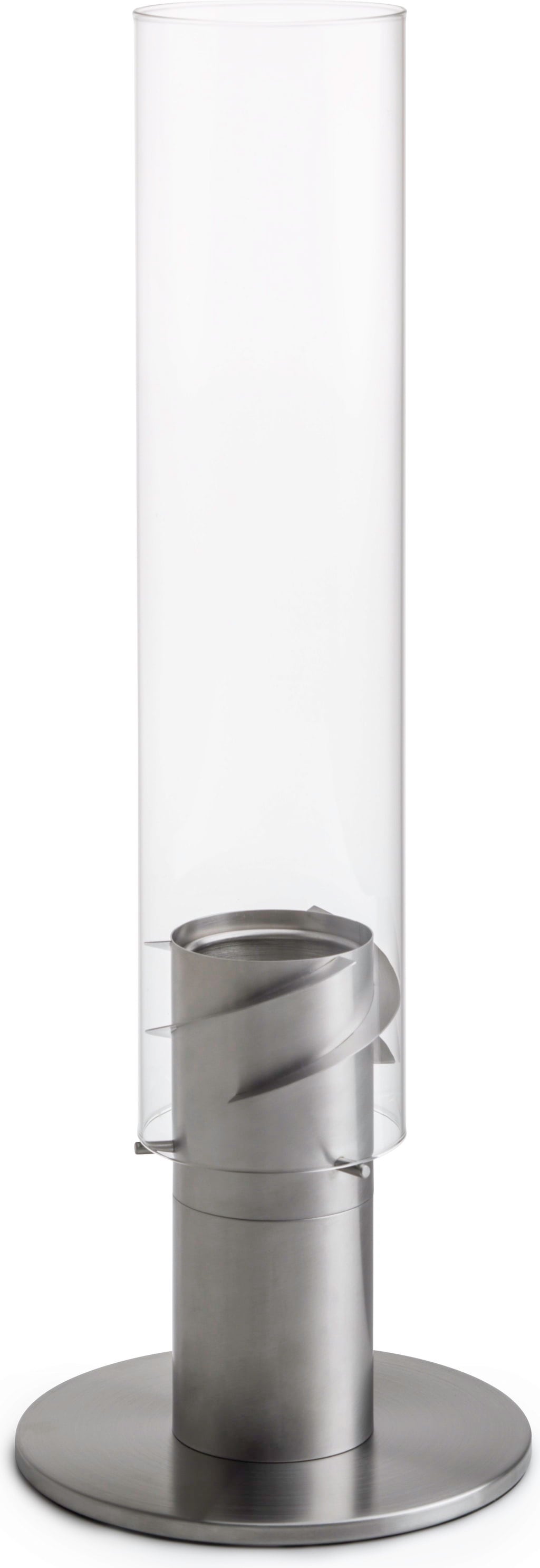 Met de verhoging van 11 cm is de SPIN 90 tafelhaard in elegant zilver ook perfect voor gebruik in de tuin. De cilinder kan snel en eenvoudig zonder gereedschap tussen de basis en de behuizing worden geschroefd. De stabiliteit blijft behouden en de SPIN 90 kan zonder problemen op de grond worden gebruikt.