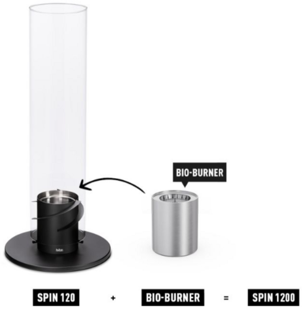 - Kan de brandstofgelcontainer van de SPIN 90 / SPIN 120 vervangen: SPIN 90/120 + Bio-Burner = SPIN 900/1200