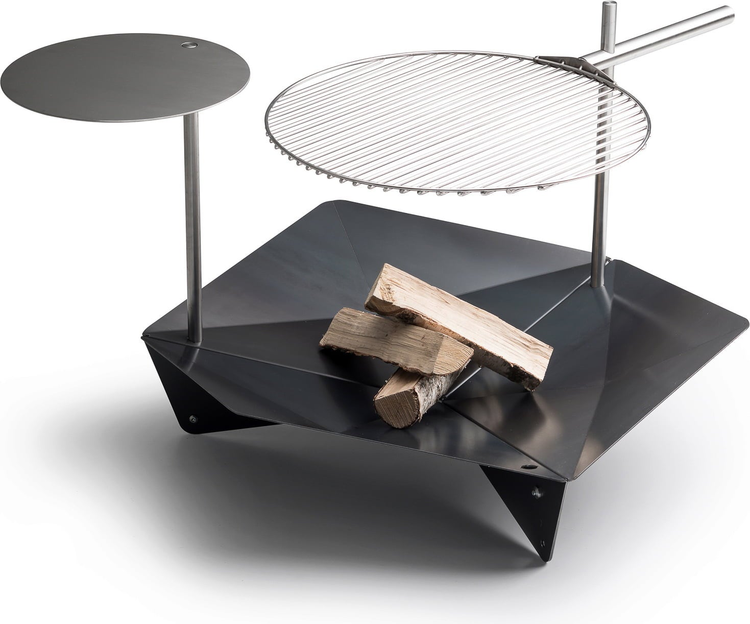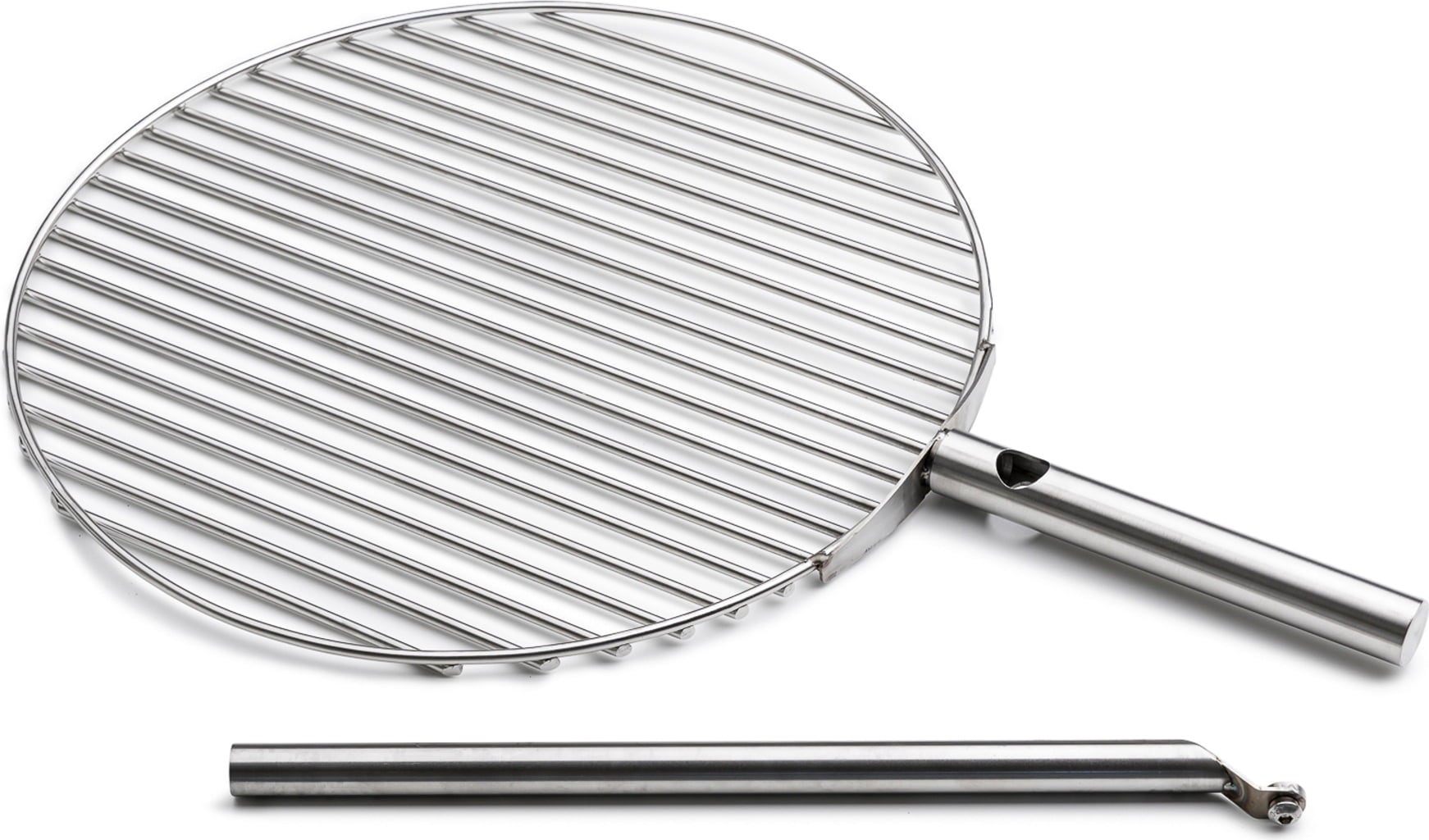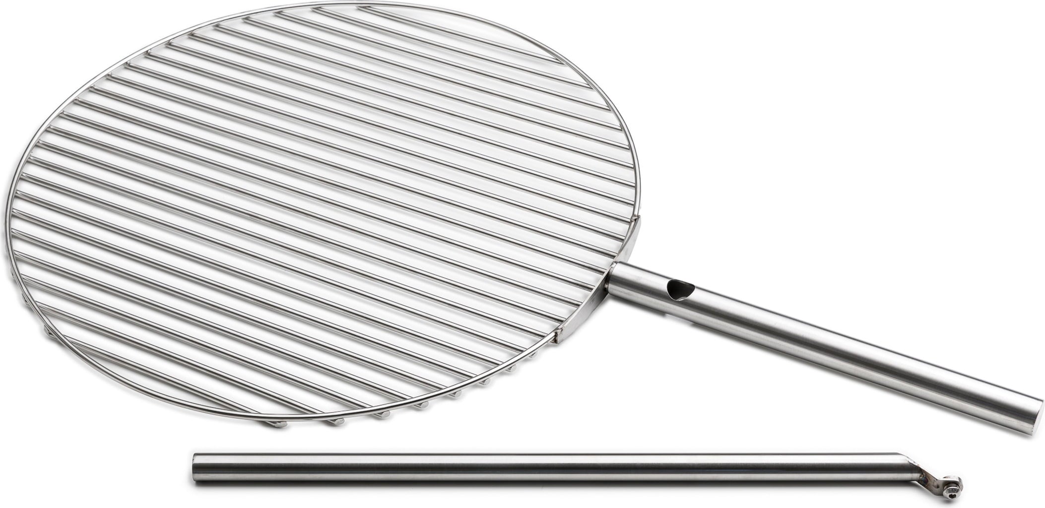 Dit draaibare en in hoogte verstelbare barbecuerooster past perfect bij je TRIPLE vuurschaal en verandert hem in een paar eenvoudige stappen in een barbecue. Het barbecuerooster kan langs de verticale geleidestang 45 cm in hoogte worden versteld. Het houdt zichzelf op elke hoogte door het te kantelen.