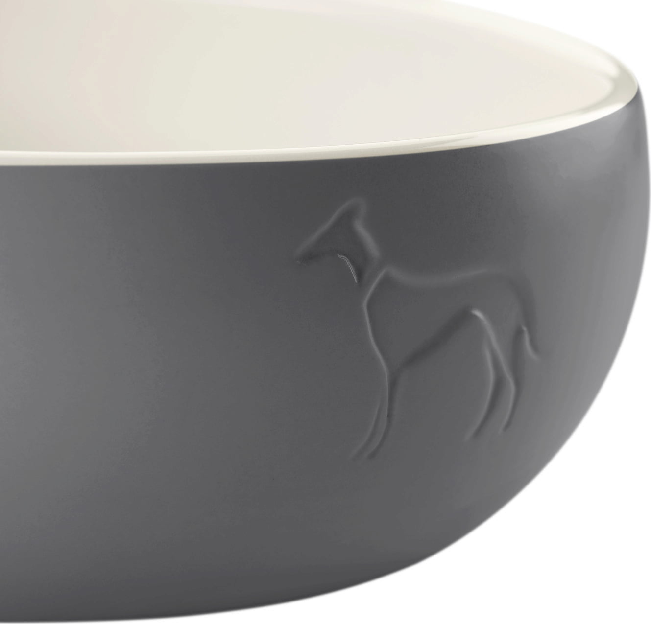 De stijlvolle Lund keramische kom is de perfecte aanvulling voor alle dierenouders die hun huis graag een modern tintje geven met dierenbenodigdheden, maar niet willen inleveren op stijl en netheid. De klassieke ronde vorm en het hondensilhouet met reliëf maken de drink- en voerbak uiterst elegant en benadrukken de originaliteit. Dankzij het hoge gewicht en de siliconen rand rondom, staat de krasbestendige en duurzame bak stevig op de vloer zonder weg te glijden als je hongerige hond iets sneller naar zijn eten grijpt.