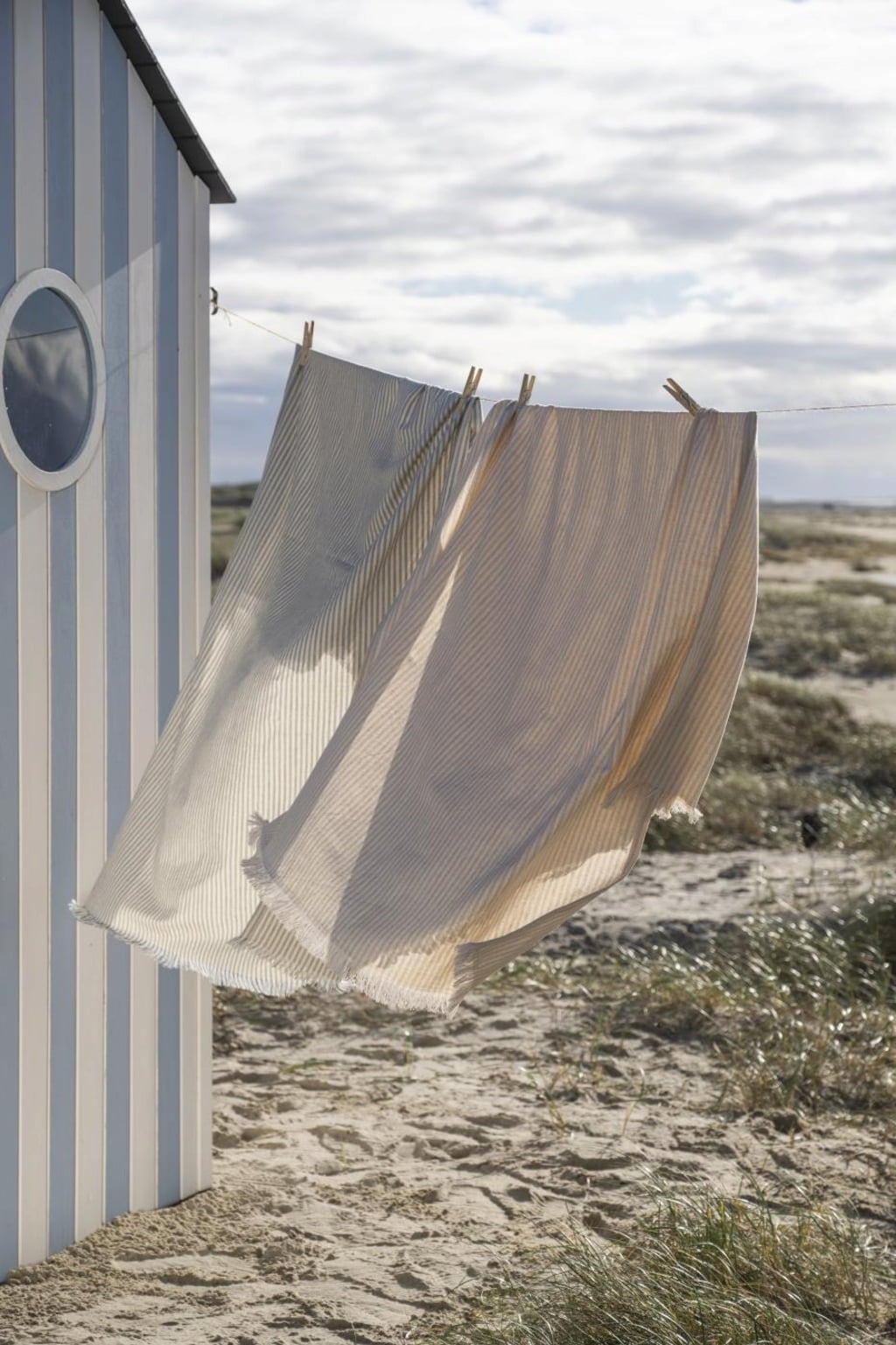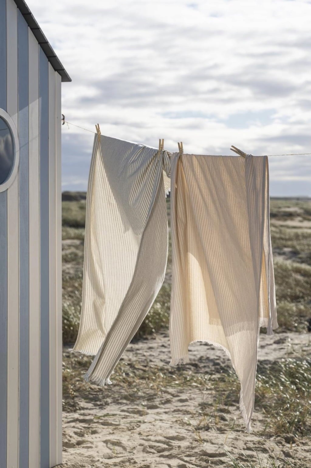 Of je nu gaat baden op het strand of als sprei op koele zomeravonden, deze hamamdoek is een praktische en stijlvolle metgezel. De aangename kwaliteit van 100% katoen is heerlijk zacht voor de huid en het design met fijne strepen en open zoom met franjes maakt het tot een echt visueel hoogtepunt.