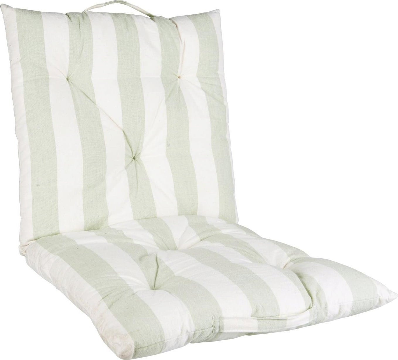 De comfortabele katoenen stof, de zachte vulling en het gewatteerde oppervlak maken het groen-wit gestreepte kussen tot een perfect accessoire om stoelen comfortabeler te maken. Het kussen kan indien nodig gemakkelijk worden opgevouwen en vervoerd dankzij de twee handgrepen.
