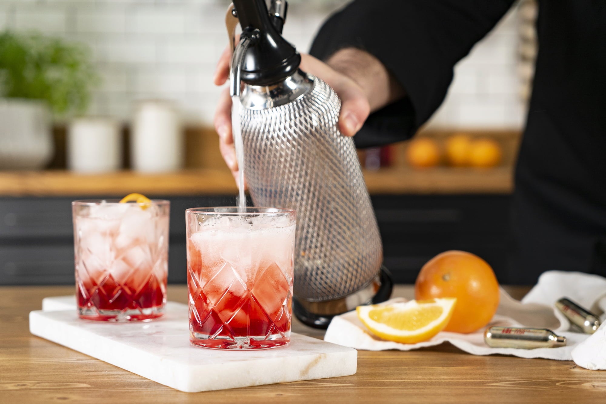 Het tijdloze ontwerp nodigt je uit om sprankelend sodawater te maken in stijl. Nu kun je in een handomdraai bruisende cocktails en longdrinks maken - je gasten zullen verrukt zijn.