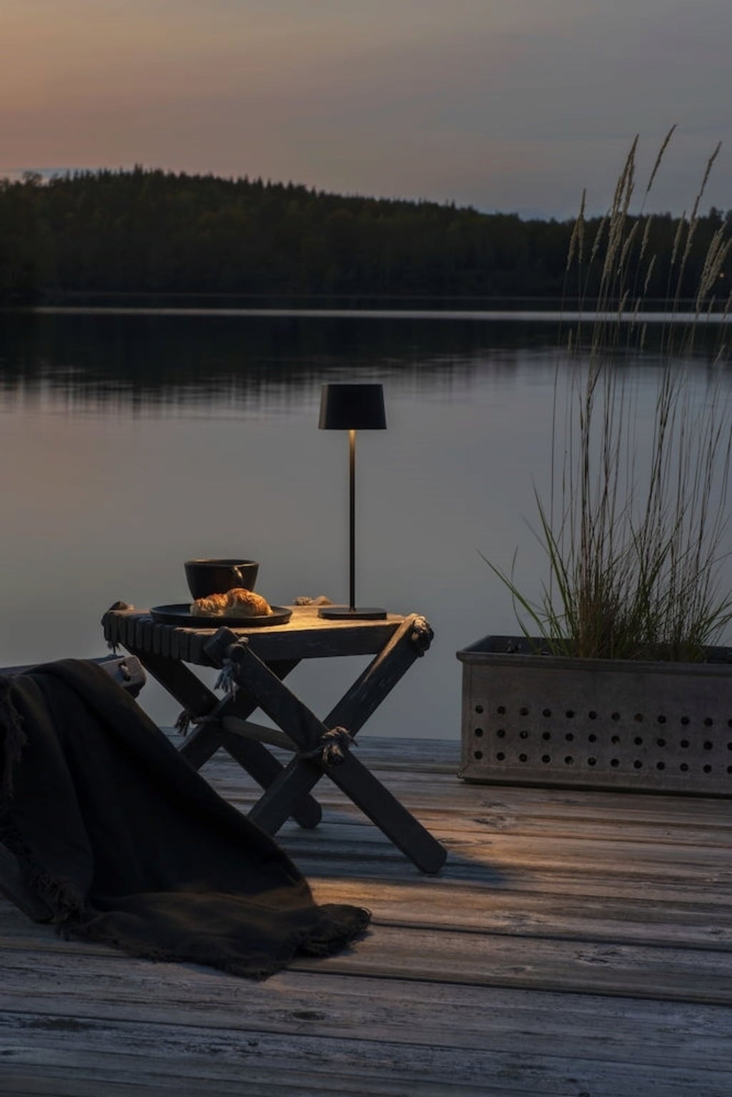 Deze puristische, elegante tafellamp is perfect voor romantische momenten op balkons en terrassen, maar slaat ook een goed figuur in de woonkamer en zorgt voor gezellig licht. De lamp is gemaakt van hoogwaardig aluminium en is niet alleen bijzonder licht en dus gemakkelijk te transporteren, maar maakt ook indruk met zijn functionele functies, zoals traploos dimmen en aanpassen van de lichtkleur.