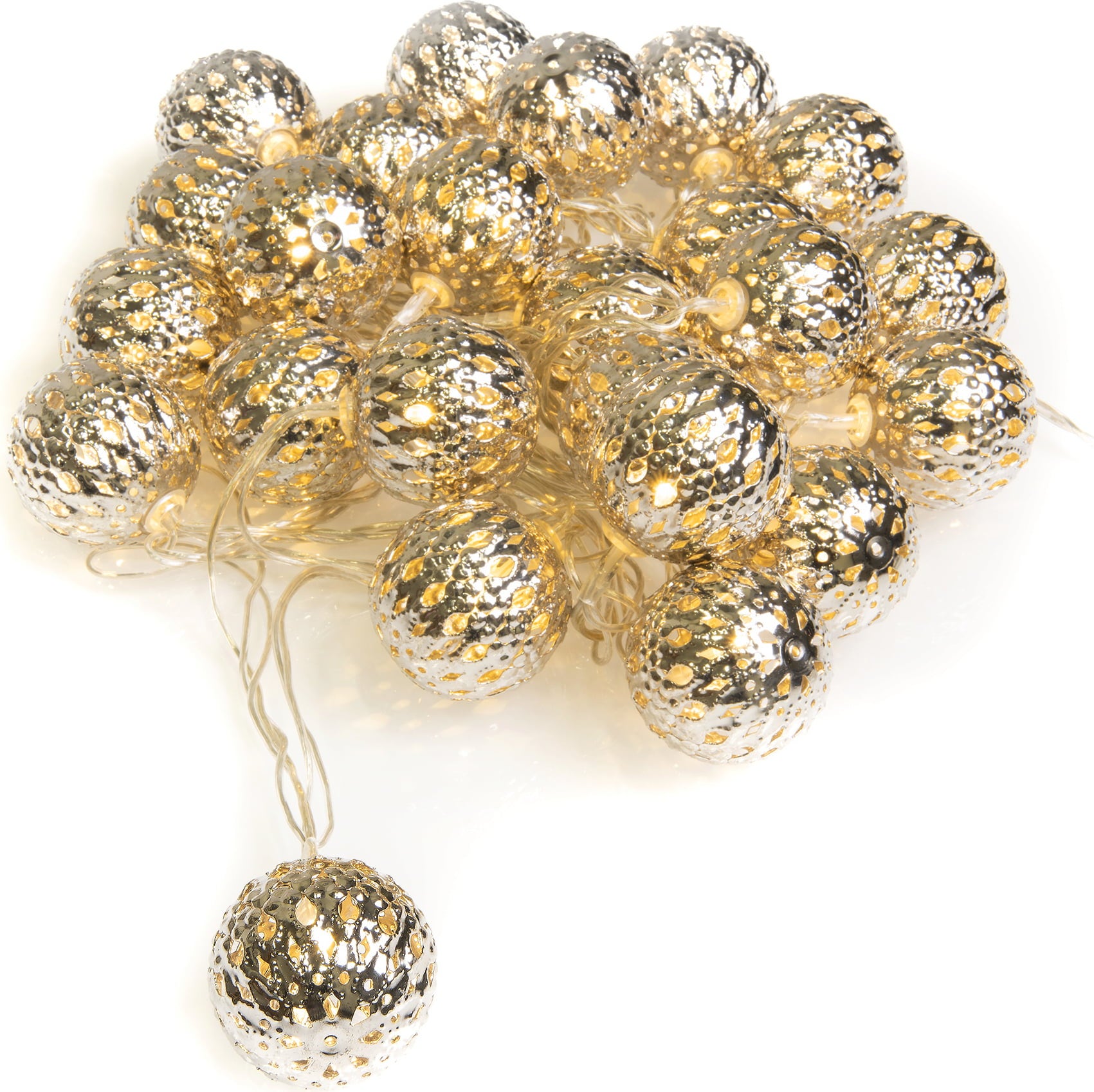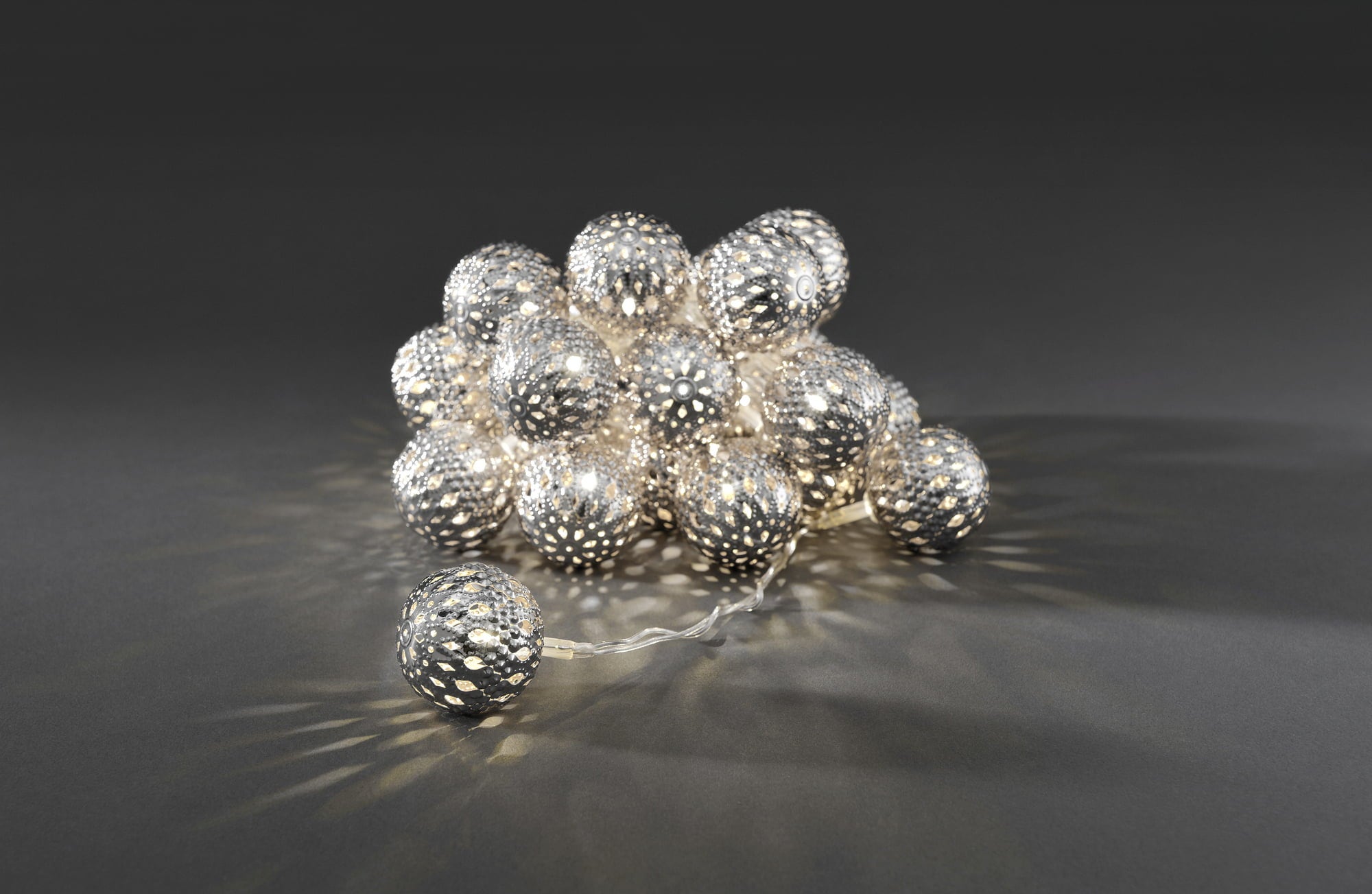 De lichtketting van hoge kwaliteit zorgt voor een unieke sfeervolle ambiance. Dankzij de fijn bewerkte metalen ballen ontstaan decoratieve lichteffecten die een gezellige sfeer creëren, en niet alleen tijdens de kerstperiode. De ketting is veelzijdig en kan bijvoorbeeld worden gebruikt aan de muur, op een feesttafel, op een dressoir of in een glazen pot.