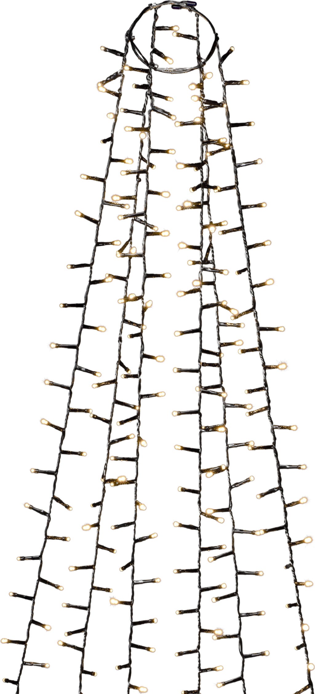 Praktische micro-led-lichtketting voor binnen en buiten. Met deze hoogwaardige lichtkettingl kunnen kerstbomen in een handomdraai feestelijk verlicht worden. Plaats de ring gewoon over de bovenkant van de boom. Hierdoor worden de afzonderlijke strengen met in totaal 660 warmwitte LED-lampjes gelijkmatig en bijna onzichtbaar verdeeld.