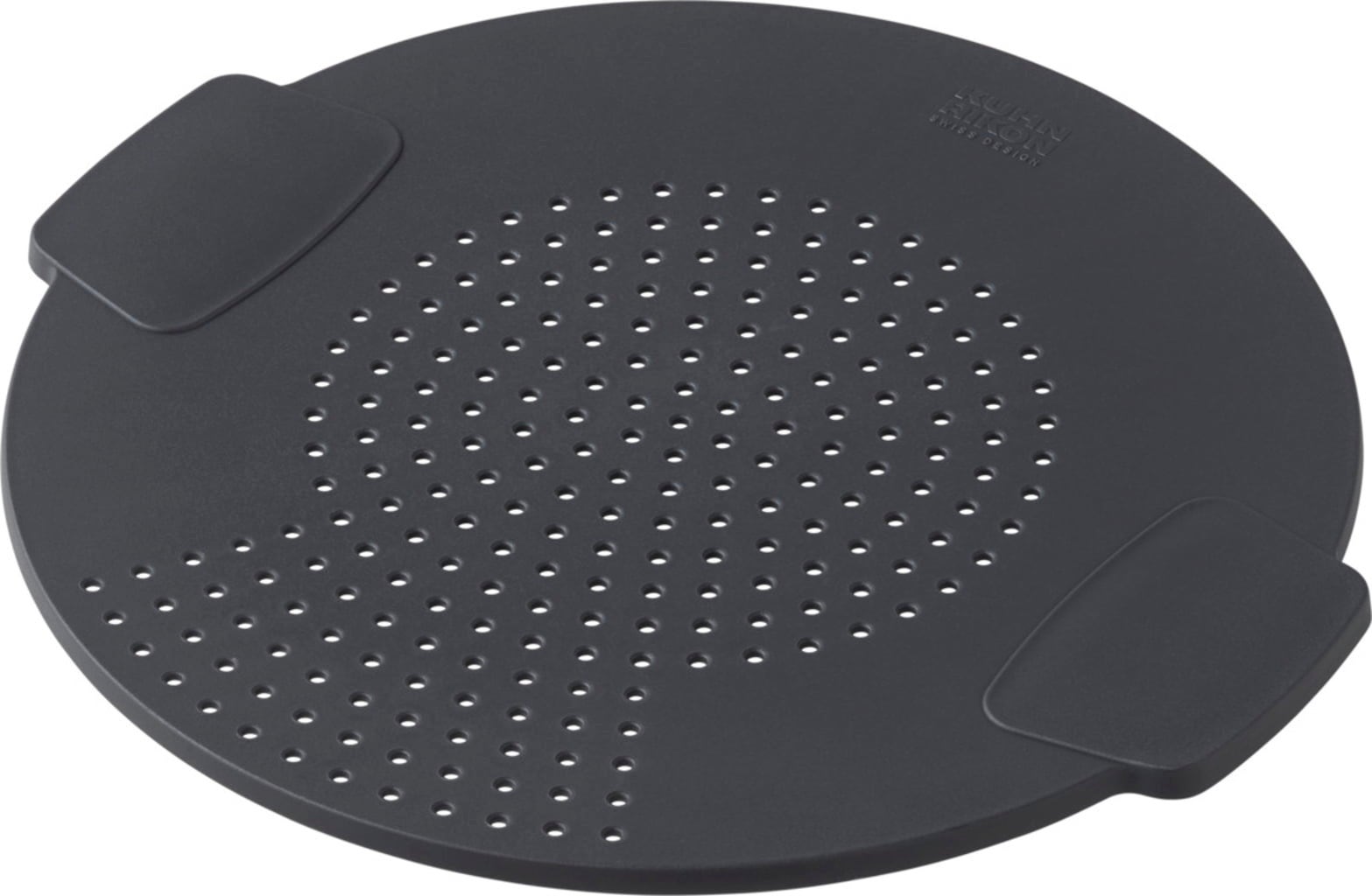Net als alle onderdelen uit de SMART & COMPACT-serie van Kuhn Rikon maakt ook deze slimme keukenhulp indruk met zijn ingenieuze 2-in-1-ontwerp. Hij kan zowel als handige schenkhulp en als praktische spatbescherming tijdens het koken worden gebruikt. De vaak volumineuze zeef voor pasta, aardappelen & Co. is dus niet meer nodig.