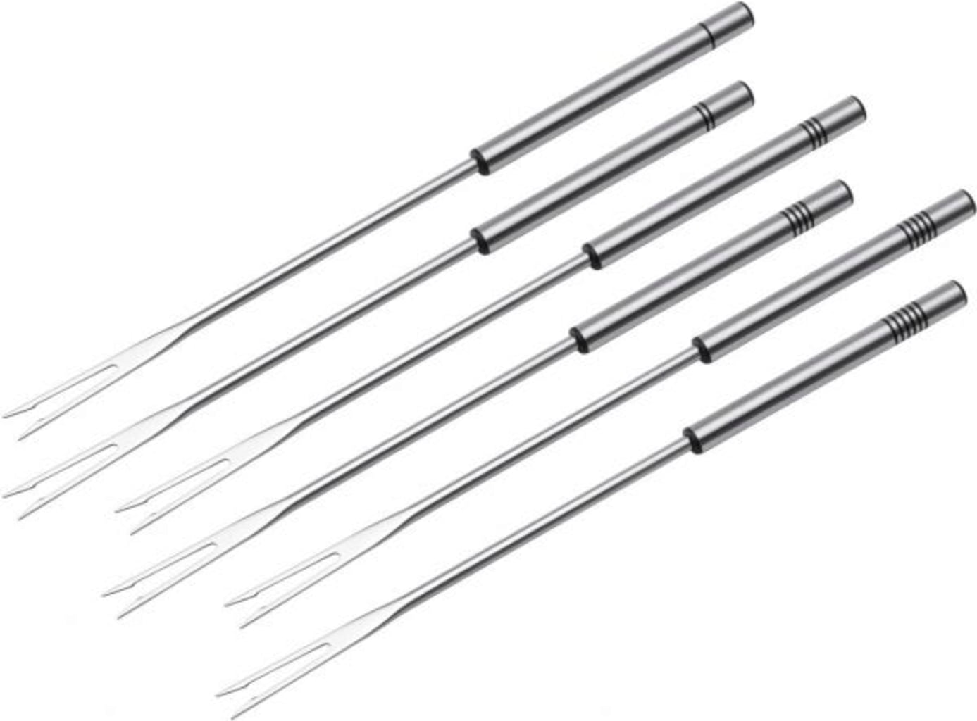 Ben je je fonduevorkjes kwijt of heb je extra fonduevorkjes nodig omdat je meer gasten verwacht dan gepland? Deze 6 elegante roestvrijstalen vleesfonduevorkjes zijn bedrukt met zwarte cirkelmarkeringen zodat je niet per ongeluk het stukje vlees van de ander pakt tijdens het eten. Zo kun je ze gemakkelijk uit elkaar houden.