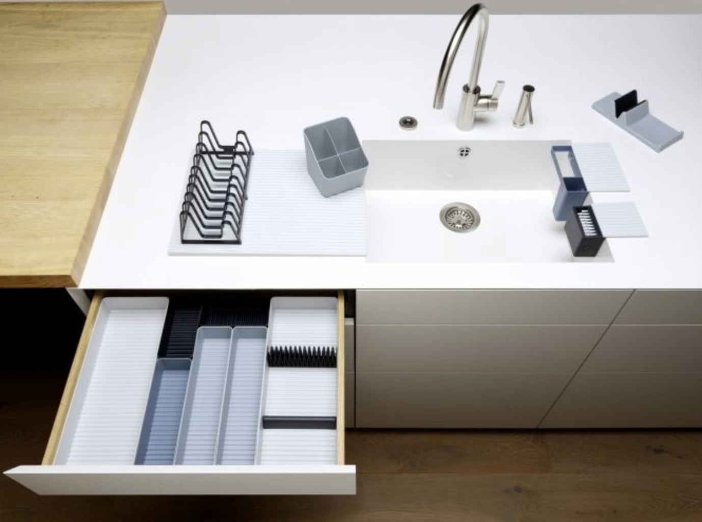 De messenhouder is geschikt voor lades met een minimale hoogte van 6 cm
