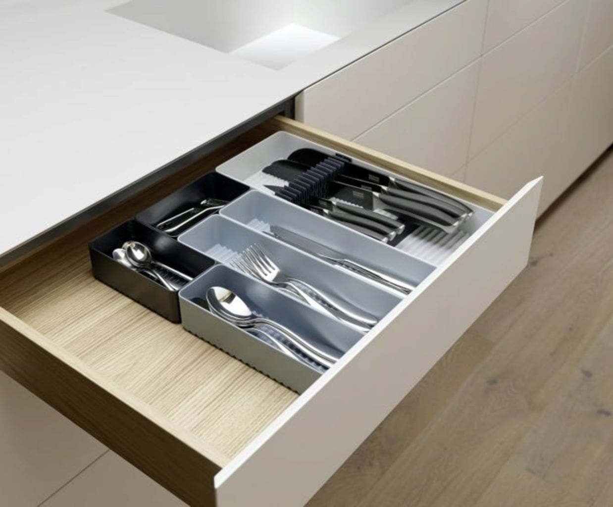 De goed ontworpen en overzichtelijke inzetstukken voor lades zijn ideaal om je keukengerei snel terug te vinden. Ze maken het mogelijk om de afzonderlijke modules precies in elkaar te steken en het keukengerei kan gemakkelijk worden verwijderd dankzij de gegolfde basis.