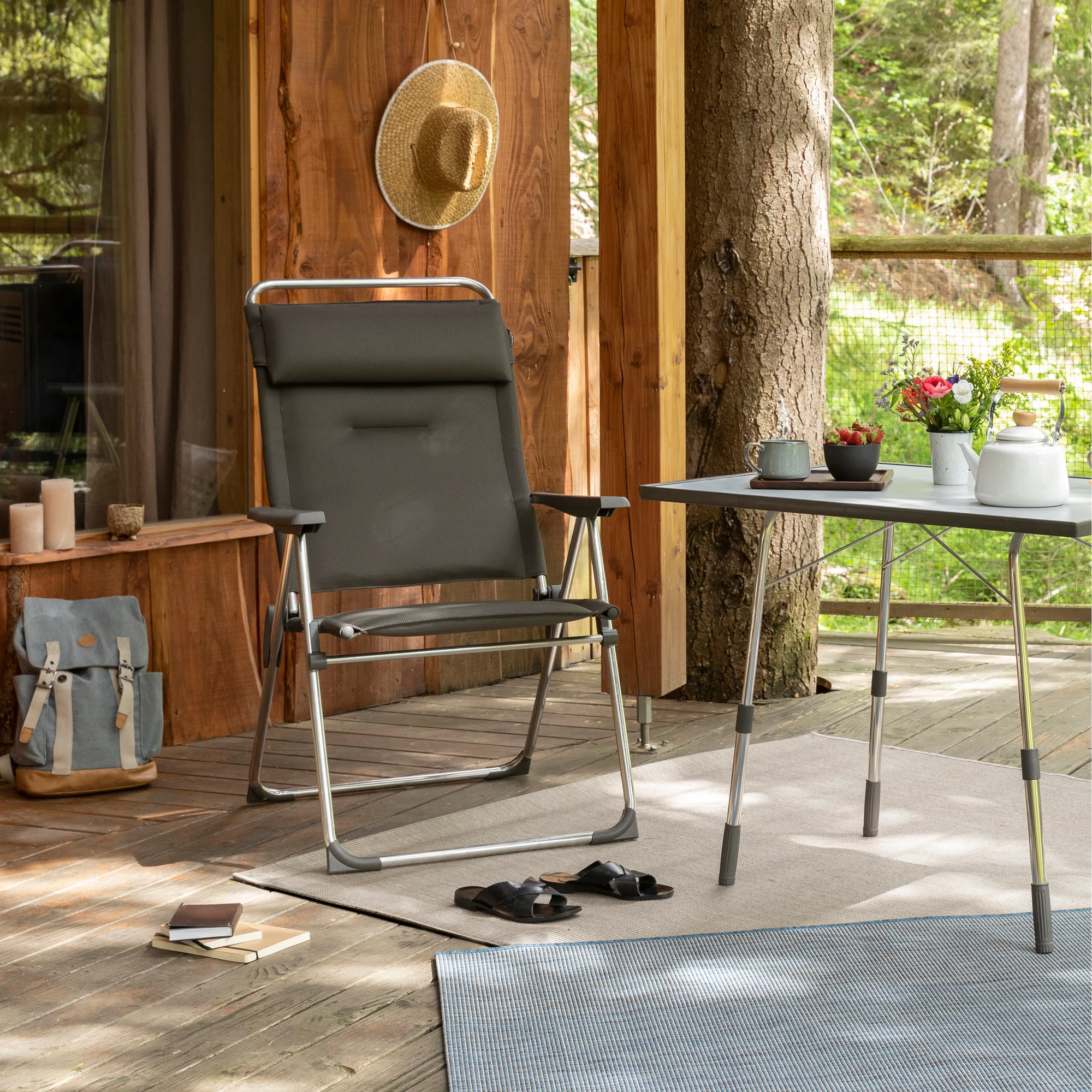 Perfect voor reizen & kampeervakanties. De multi-positie klapstoel Alu Cham XL Aircomfort® van Lafuma scoort niet alleen met zijn comfortabele afmetingen, maar ook met zijn lichte gewicht, compacte vouwformaat en ergonomisch design.