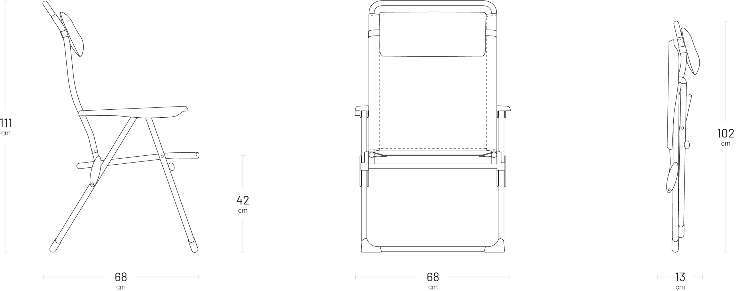 - Armleuningen uit één stuk, verstelbare en afneembare hoofdsteun
