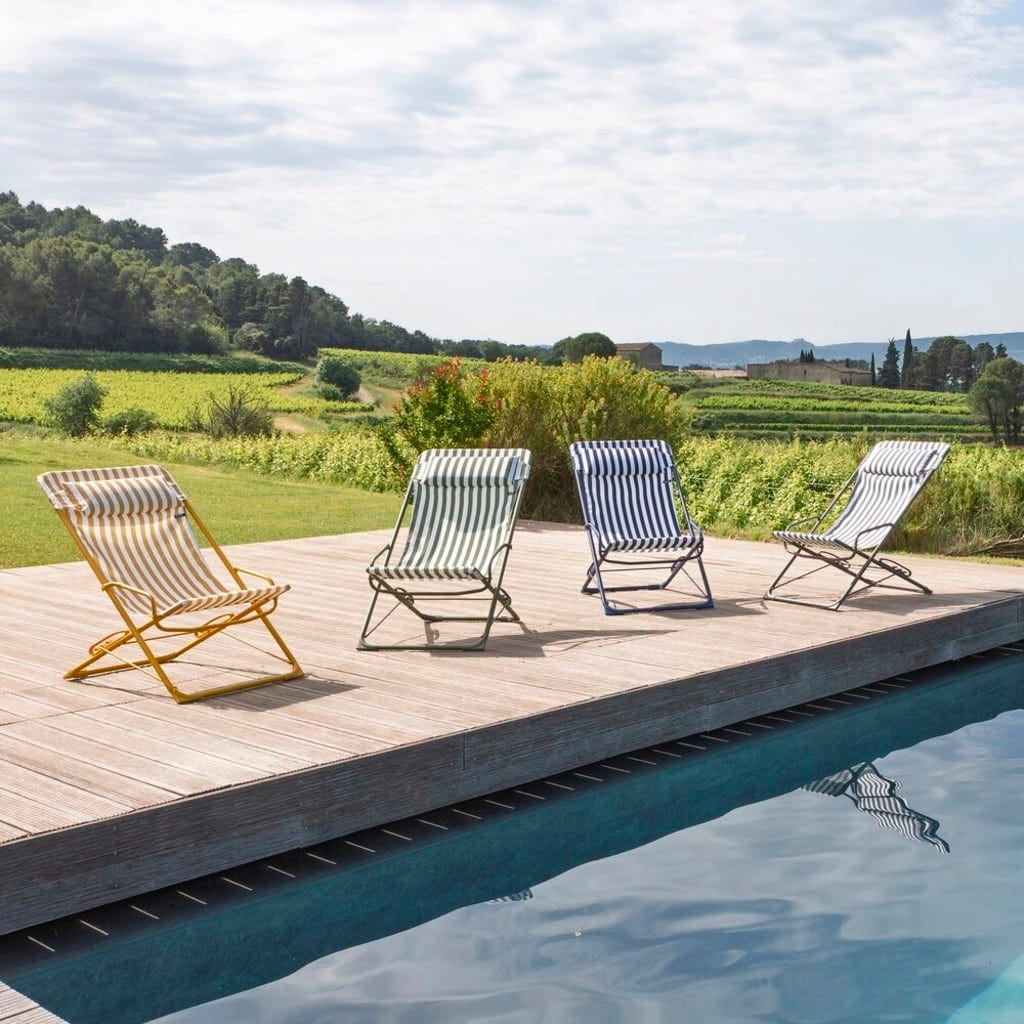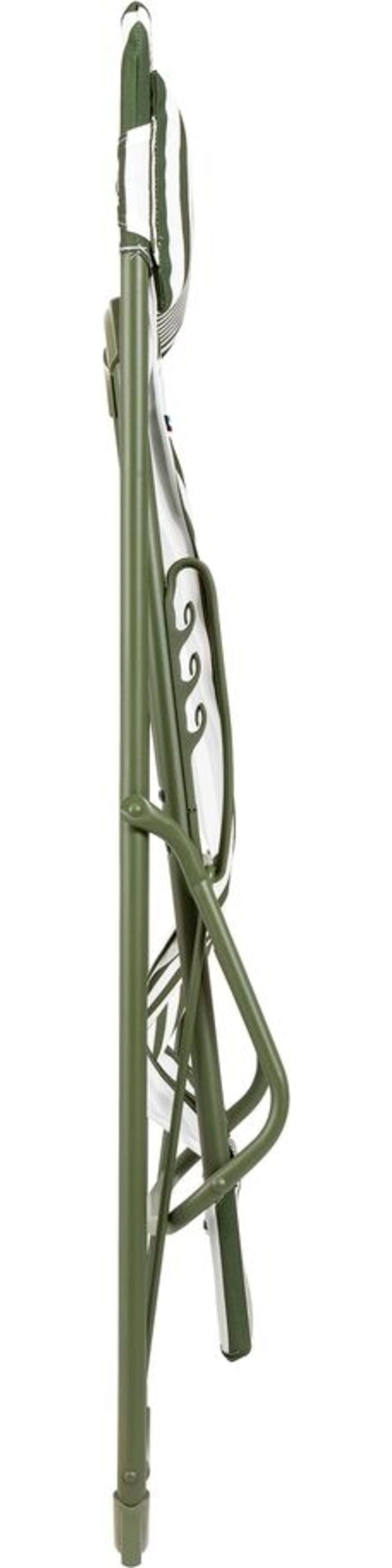 Of je nu rechtop wilt zitten in goed gezelschap, ontspannen wilt lezen of je helemaal wilt uitstrekken voor een kort dutje – via het veilige vergrendelsysteem met praktische geleidestang wissel je vloeiend tussen drie comfortstanden. De hoogwaardige Airlon-bekleding in maritieme look zorgt voor een stijlvol accent op je balkon of in de tuin. Bovendien is de stoel in een handomdraai plat in te klappen, waardoor hij zelfs in de kleinste nis een plekje vindt.