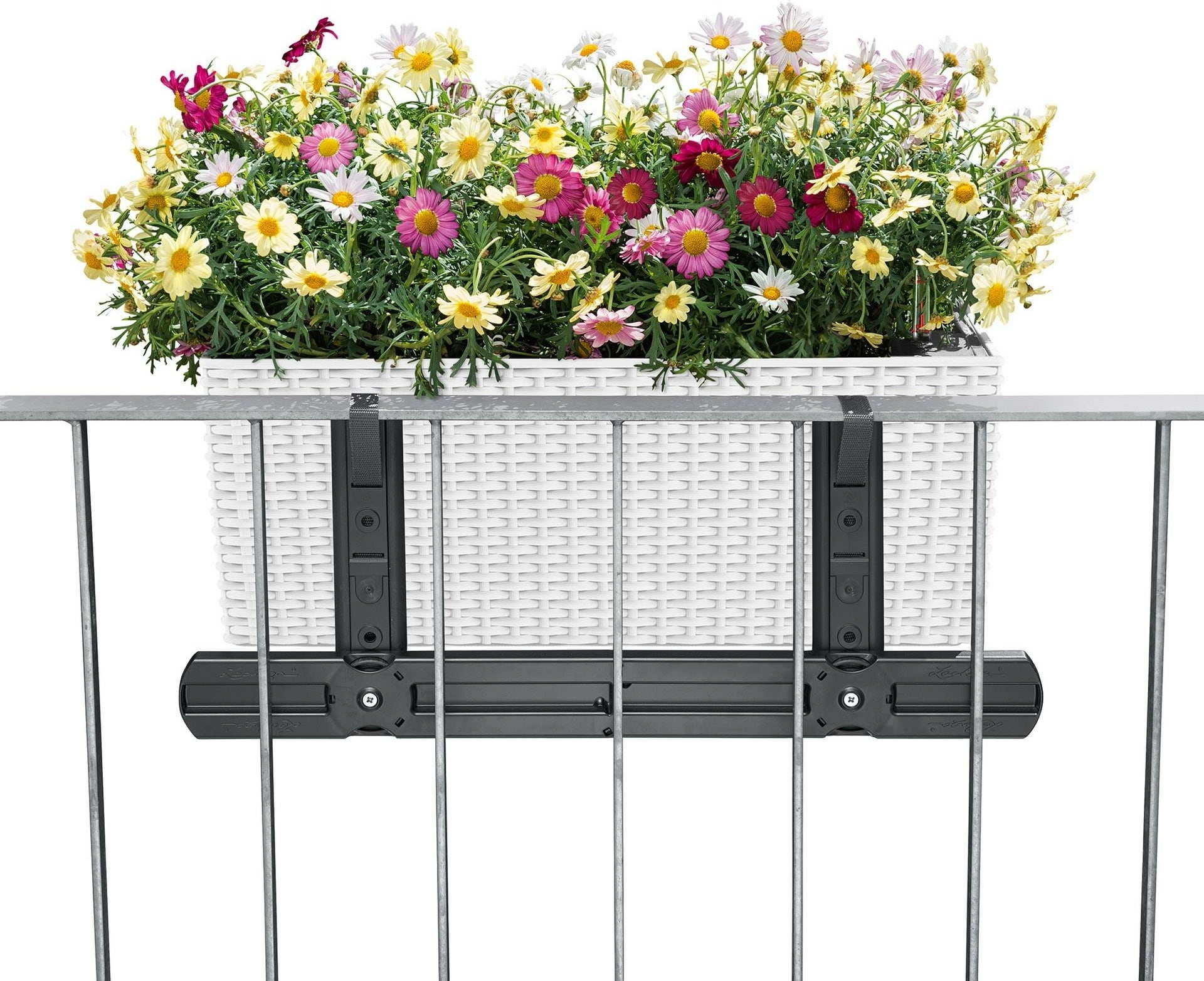 Opmerking: De beugels die nodig zijn voor de bevestiging aan de balkonreling worden niet meegeleverd, maar kunnen apart worden besteld onder "Accessoires" .