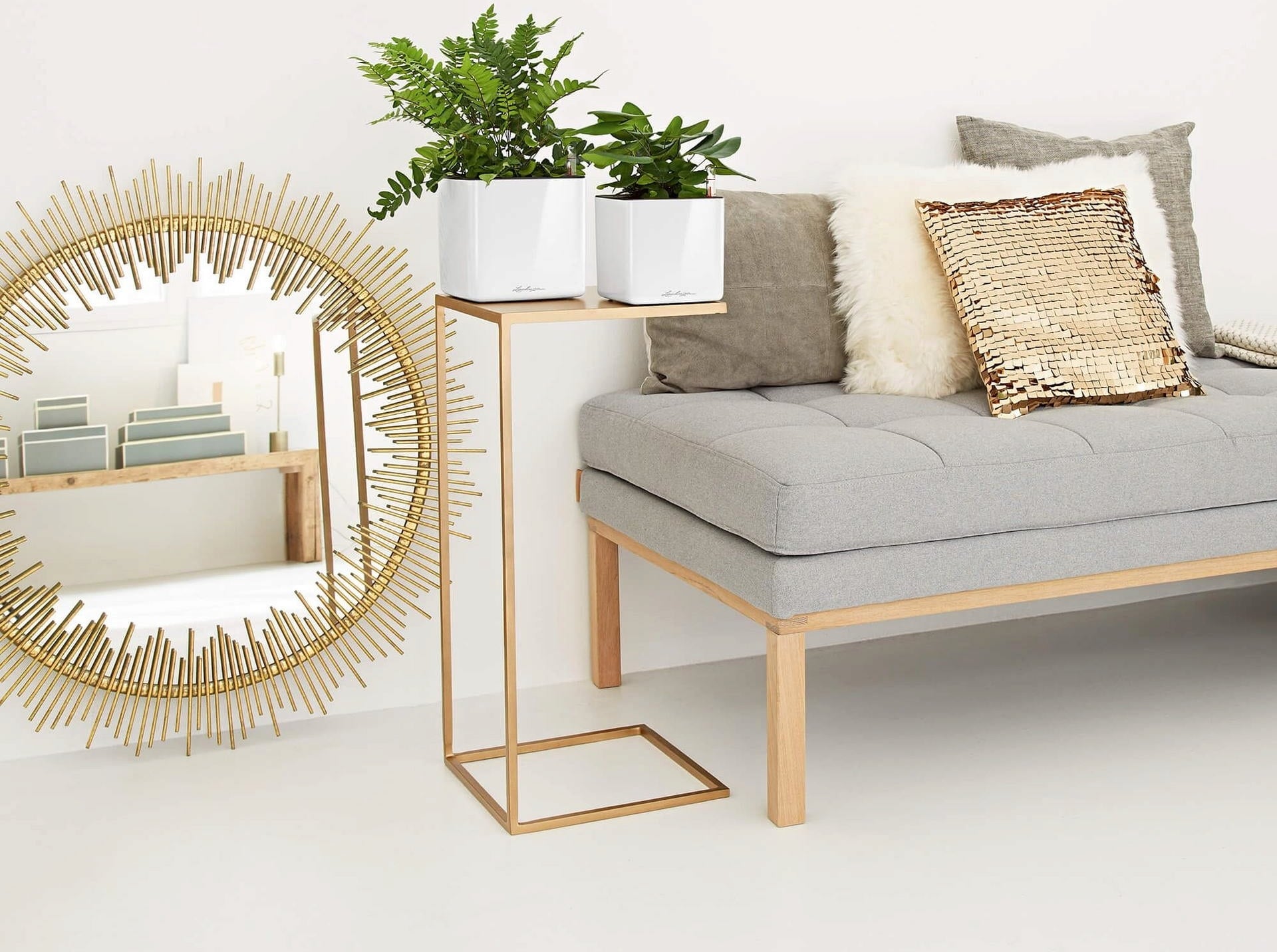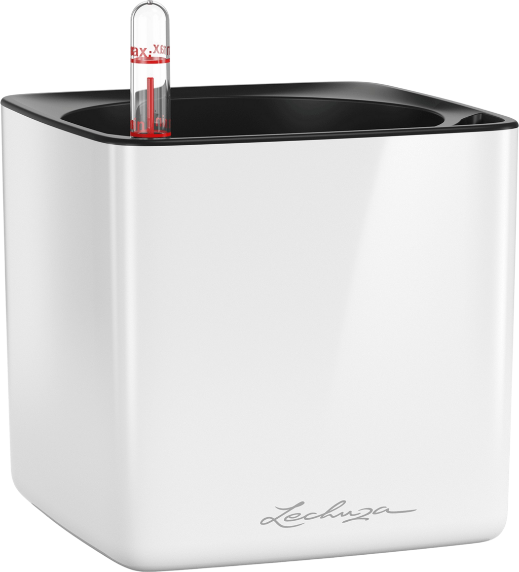 Het Lechuza bewateringssysteem zorgt ervoor dat het watergeven van de planten niet te veel tijd in beslag neemt. Planten kunnen eenvoudig samen met de groeipot in de potten uit de Cube Premium-collectie worden geplaatst, zonder dat ze tijdrovend moeten worden verpot. Een stok die van onderaf in de kweekpot wordt gestoken, transporteert het vocht gelijkmatig naar de wortels. De waterniveau-indicator kan worden gebruikt om te controleren wanneer het tijd is om opnieuw water te geven.