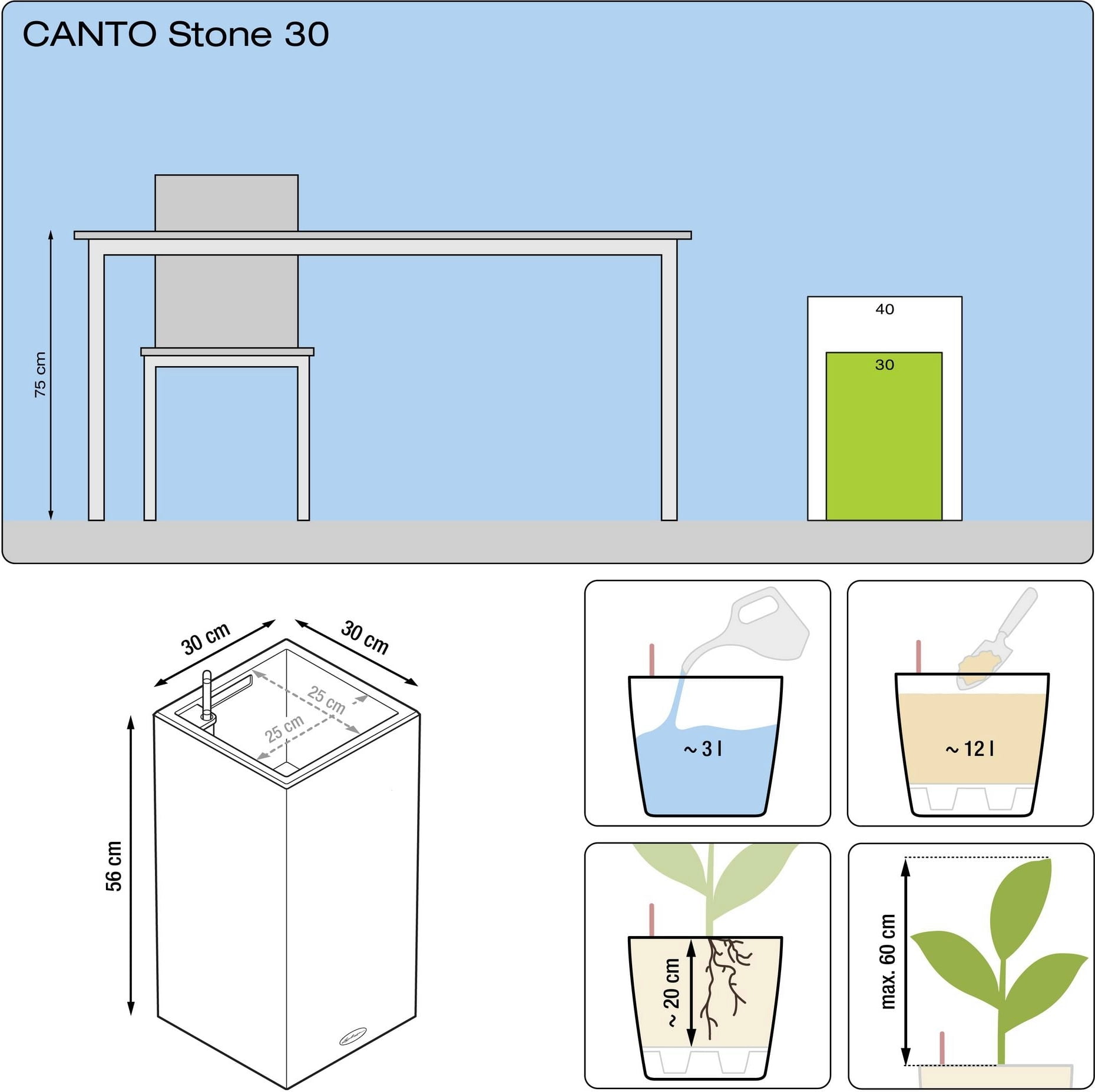 De set bestaat uit de plantenbak, een planteninzet en een bewateringsset. Dankzij dezelfde afmetingen kan de CANTO Stone planteninzet gemakkelijk worden uitgewisseld tussen de twee modellen.
